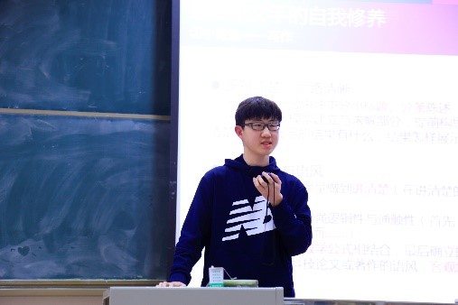 王佳宇同学用幽默风趣的语言,结合着自己学科知识,为我们讲解了美赛审题的步骤,并以海边建沙堡和出海打渔等生动的实例带领大家还原了建模解题的全过程。宋志翔同学以数学教材编排方式为范本详尽地论述了如何把求美,求实的原则落实到论文写作当中,分享了建模论文写作者自我修养的心得。欧炜庭同学为大家讲解了美赛的组队技巧和备战攻略,分析了各类编程软件、绘图软件、搜索引擎和其他辅助类网站的优缺点。贾林瀚徐勐同学为我们推荐了许多有用的资源如最新的算法以及各种获取途径纪量同学为我们结合时下热点,大处着眼,小处着手,从传染病的SI简单模型出发介绍了完善数学模型的方法。张荣德同学结合这自己三年的参赛学习经历,析比较了各种算法的具体应用,牢牢抓住数学建模的内在本质,化用《三体》经典名句热情地给出一系列独到的观点和建议谢子怡同学从写作的方面上分享了诸多细节干货,如latex使用及论文结构的要求,并解答了论文写作时间分配等同学们关心的问题。任奕璇除建模过程中的常规问题外,还着重为大家辅导了数学建模比赛中遇到突发事件时心态调节的方法。