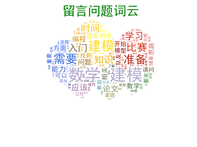 大会开始后,主持人先将大家所关心的焦点问题提炼成词云图,直观地呈现在主讲同学面前。随后,王佳宇、宋志翔、欧炜庭、纪量、张荣德、贾林瀚、徐勐、谢子怡、任奕璇等九位曾在国赛或美赛中获奖的同学上台针对性地分享建模经验。这些同学来自多个学院他们用独特的观点分享了自己的经历并提出多项可行建议。