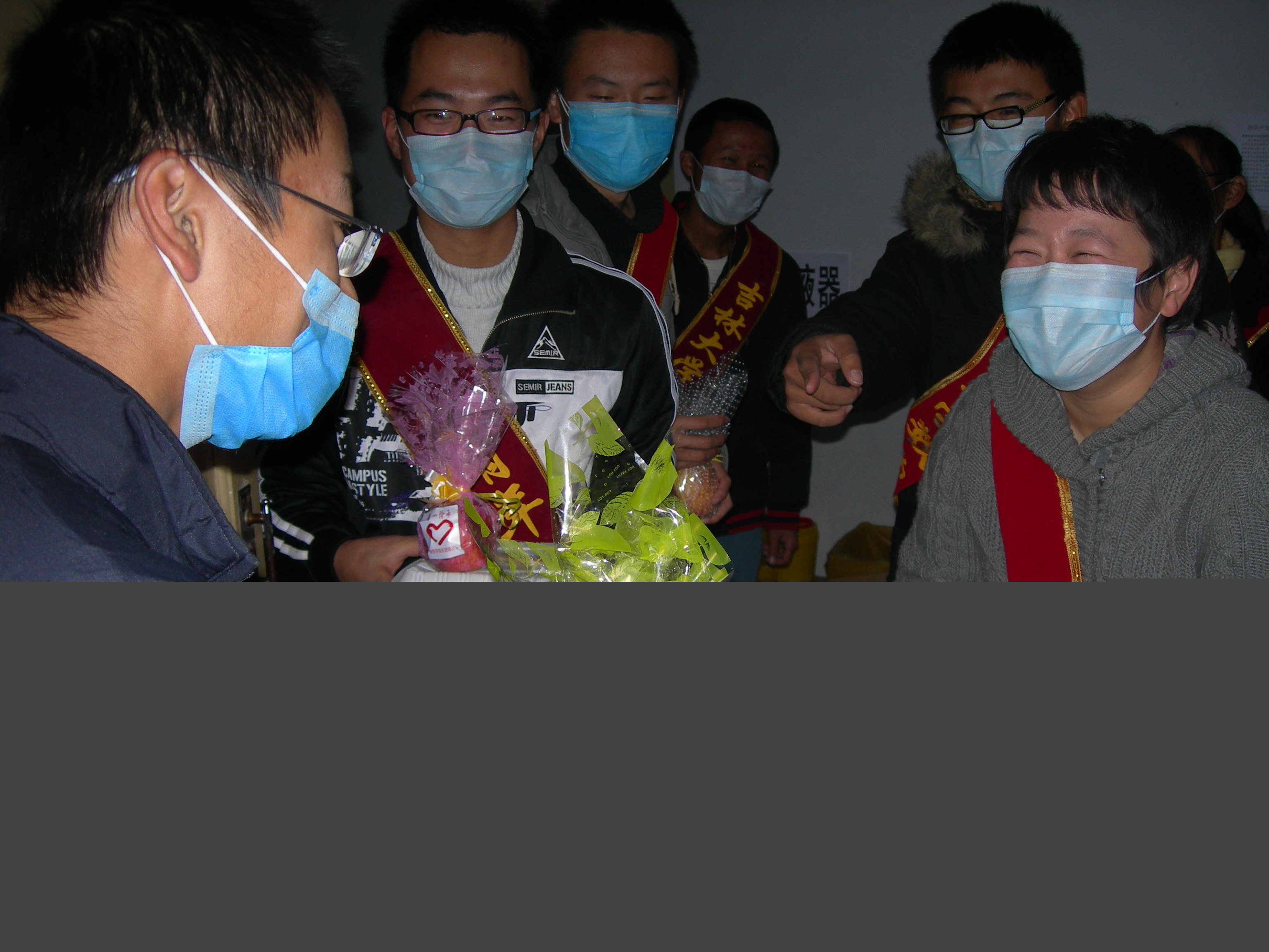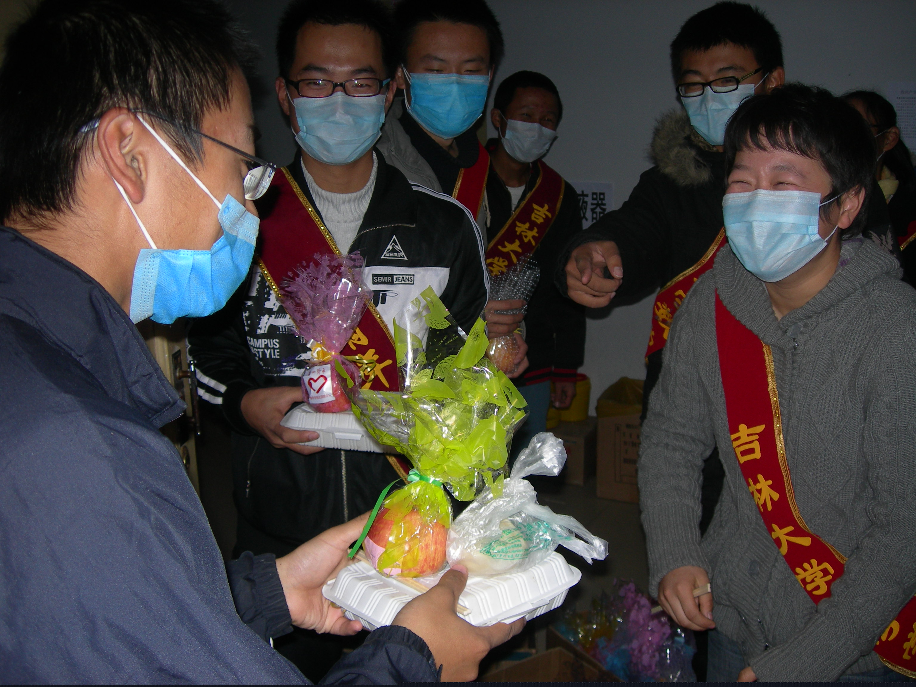 爱心阶承青年志愿者协会在校团委抗击甲流的号召下,组织志愿者们将一个个精心包装的爱心苹果送到了大学城的被隔离者以及医护人员手中。