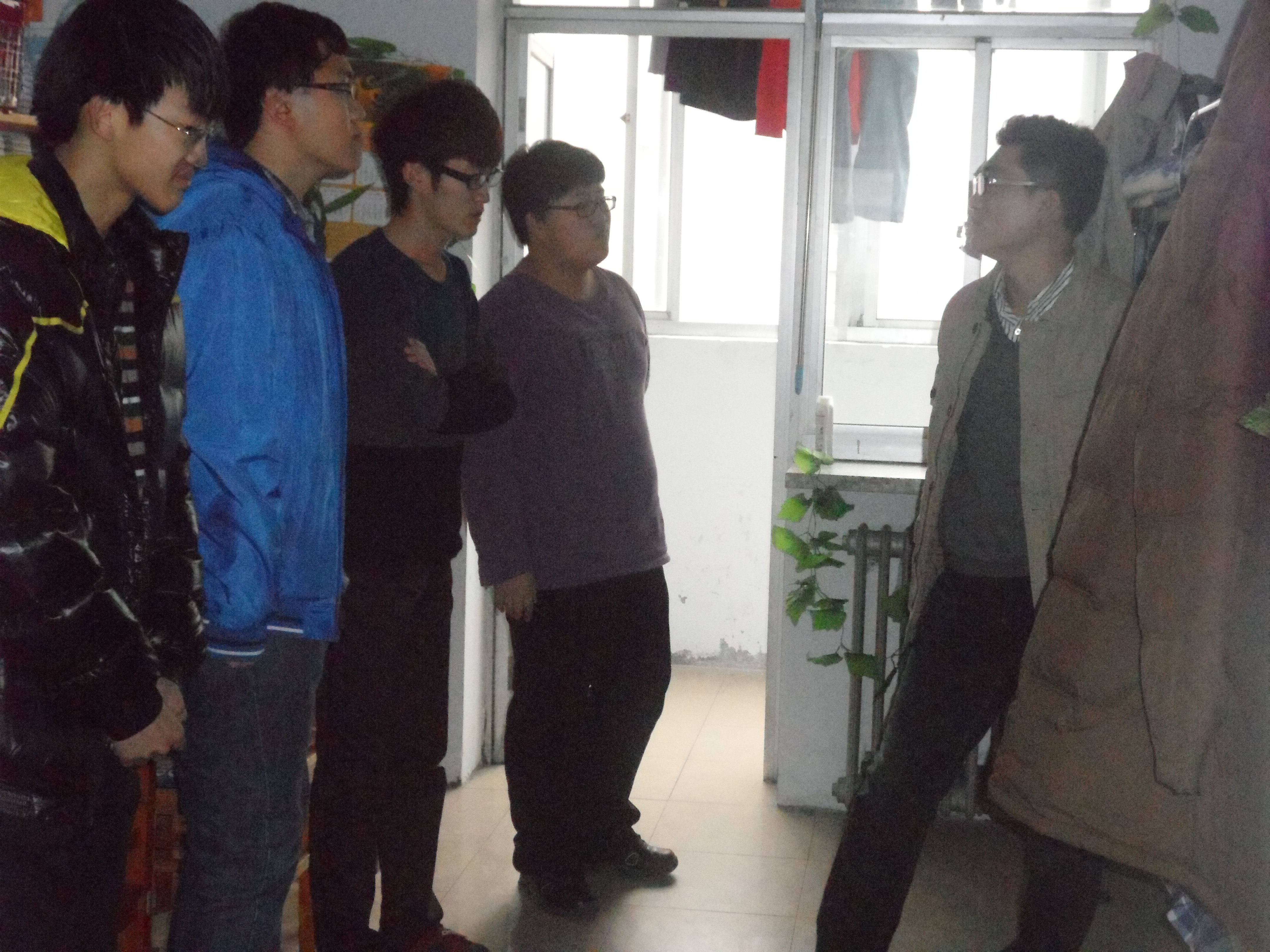 活动从文苑一舍开始,通过南苑和经信,最后在大学城结束。在活动进行期间,赵老师以及三位辅导员老师首先与各寝室学生就学习、生活等方面进行了亲切的交谈并表达对学生的关爱,在查看了各学生寝室的实际状况后,对各学生寝室做了一些点评并就寝室环境卫生问题提出了一些改善的方法,强调防范安全防火隐患,杜绝违章用电行为。还统计了顶层漏水、墙壁发潮等情况,向学校有关部门上报。