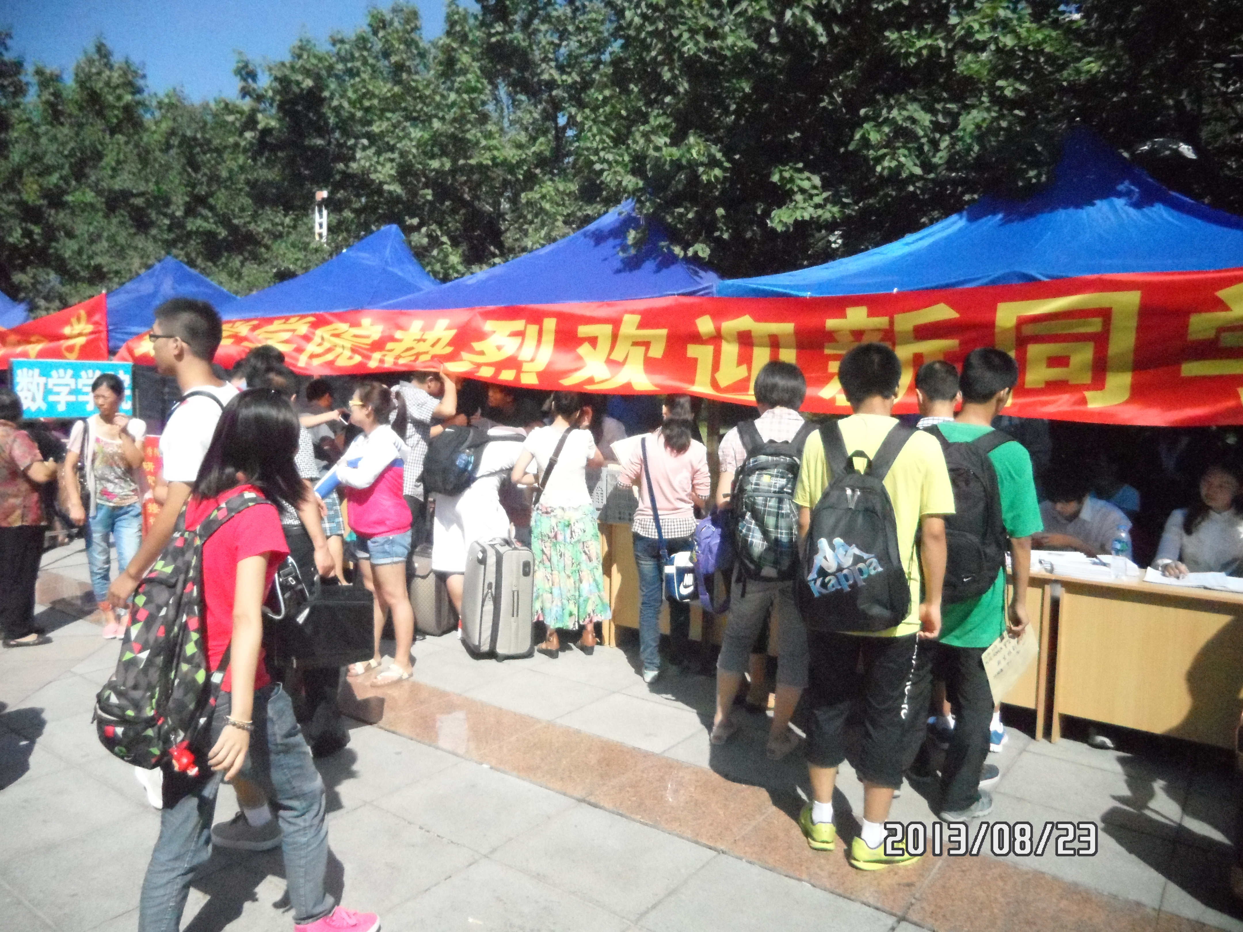 8月23日,新生正式报到。今天新生的报到场面依然火爆,在五月花广场设立的新生报名处早上7点就已是人山人海。尽管天气炎热,但每一位工作人员都热情似火,接待工作忙中有序。现场还有很多的志愿者为新生和家长引路,帮他们搬运行李。每当一位新生到校就会由一位志愿者引领他们到指定地点报到,然后把他们送到寝室,在寝室的楼下又有志愿者为他们把行李搬上楼,帮助他们整理寝室。