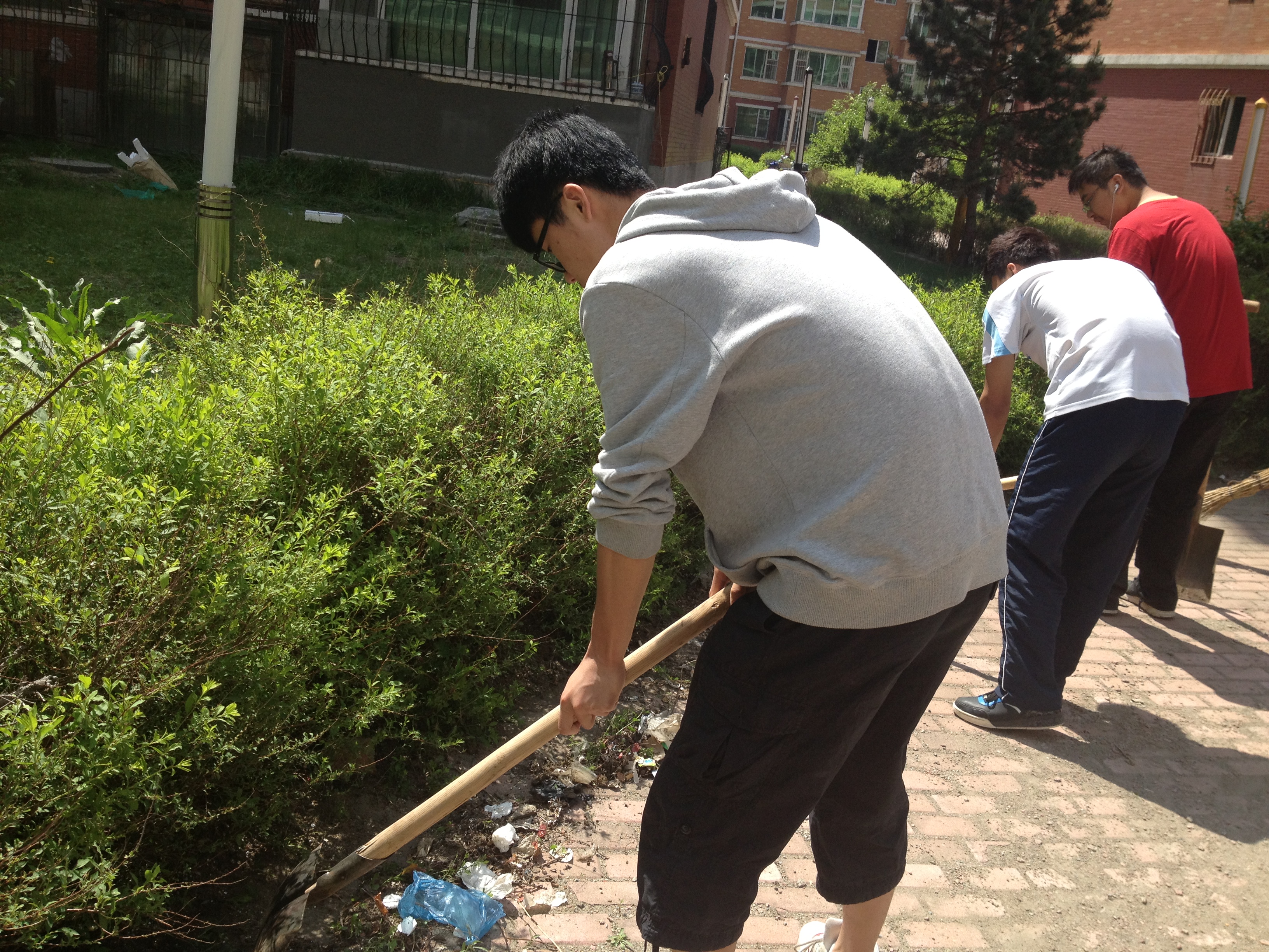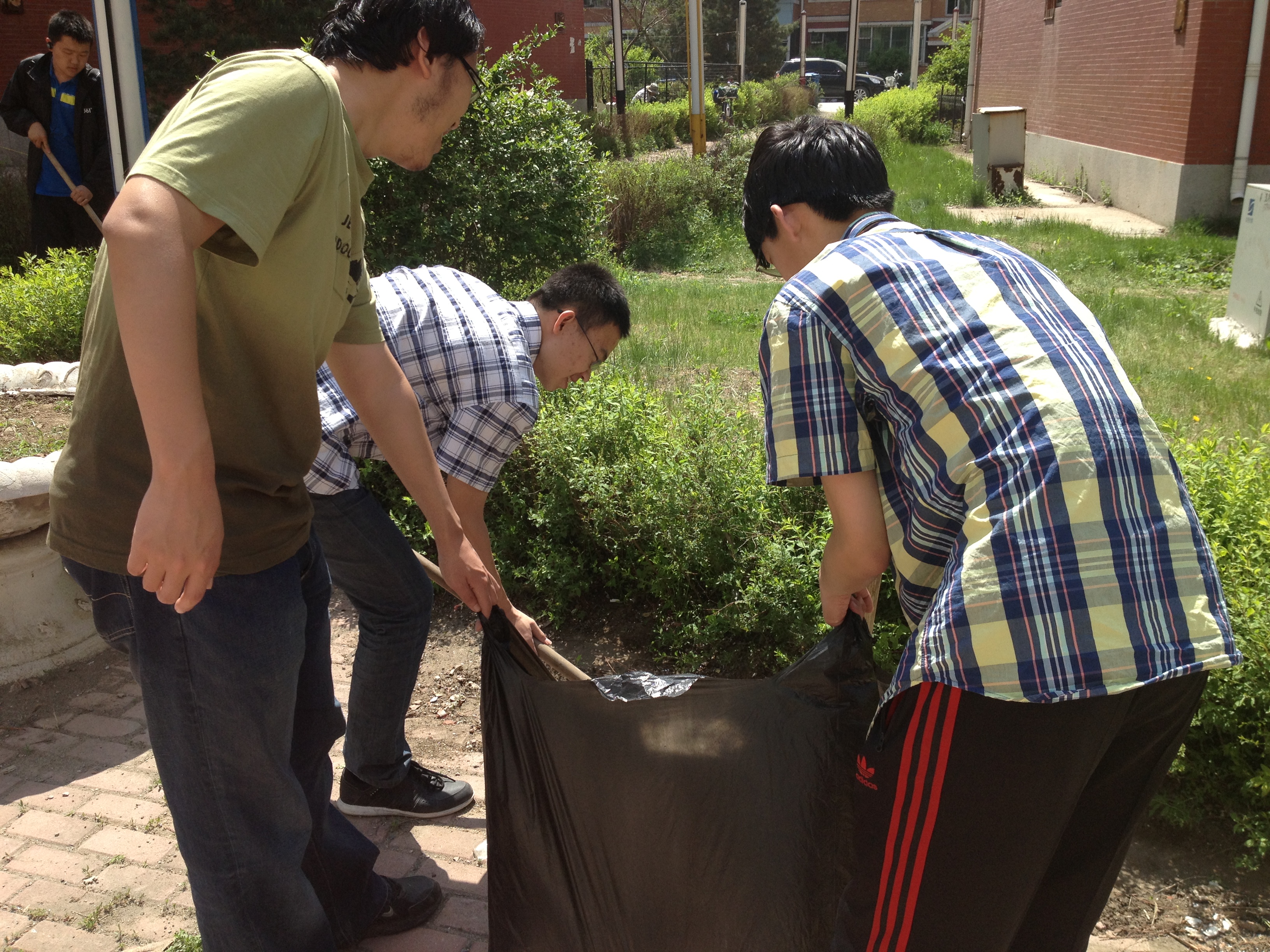 志愿者们到达小区后便开始卫生打扫,配合社区工作人员处理了大量丢弃在花园中的垃圾。本次活动的意义在于不仅为大学生提供一个平台让他们走出校园、走进社会、得到历练;也让他们体会到了环卫工人的辛苦、体味到了大学生的责任。
