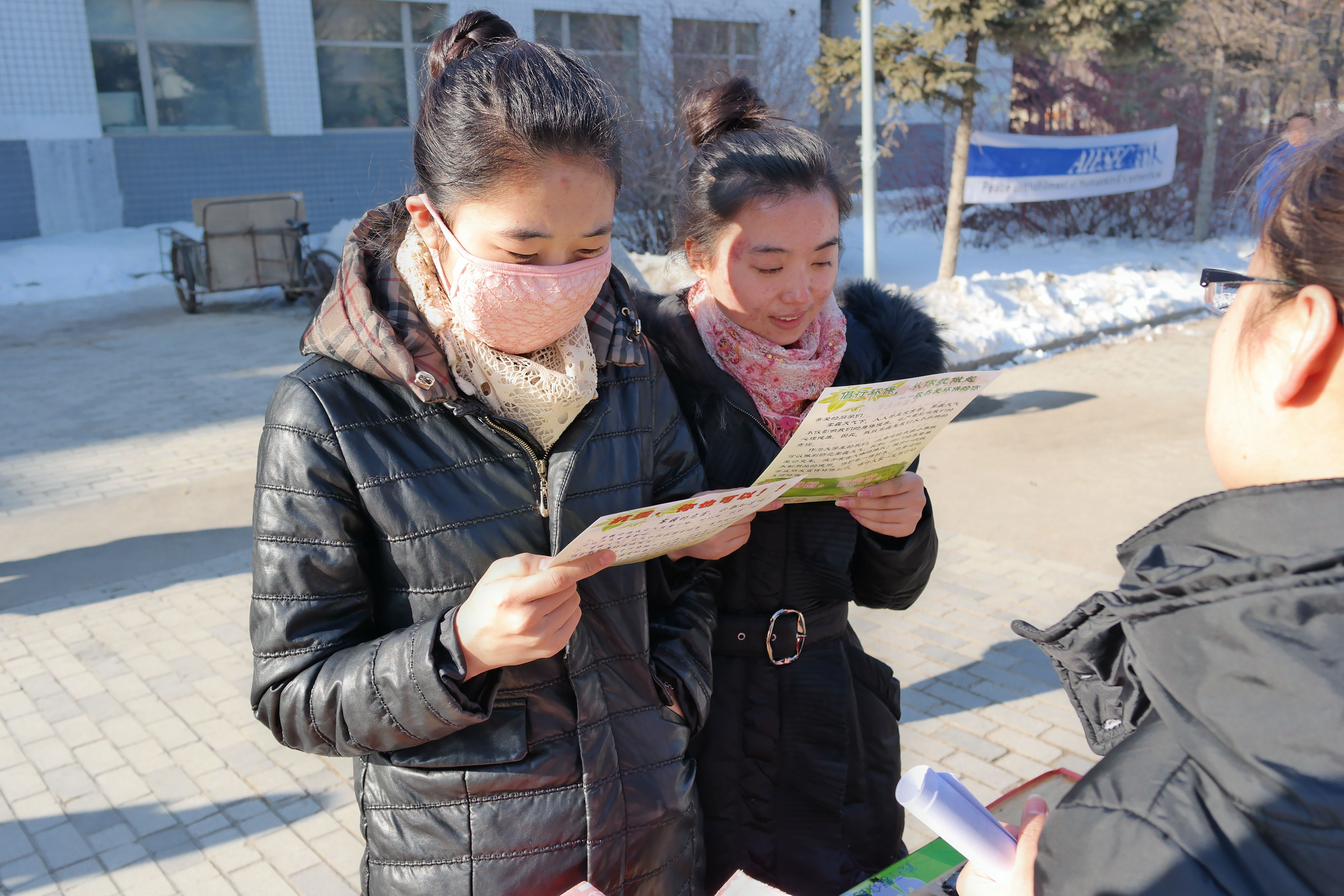 天气虽冷,但同学们的参与热情极高。活动现场,大家纷纷前来答题,领取倡议书,场面甚是热闹。