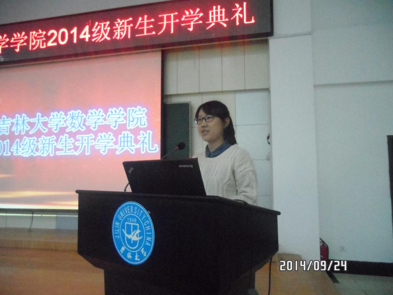 颁奖结束后由2014级基础学科拔尖人才班郭宸同学代表新生发言。