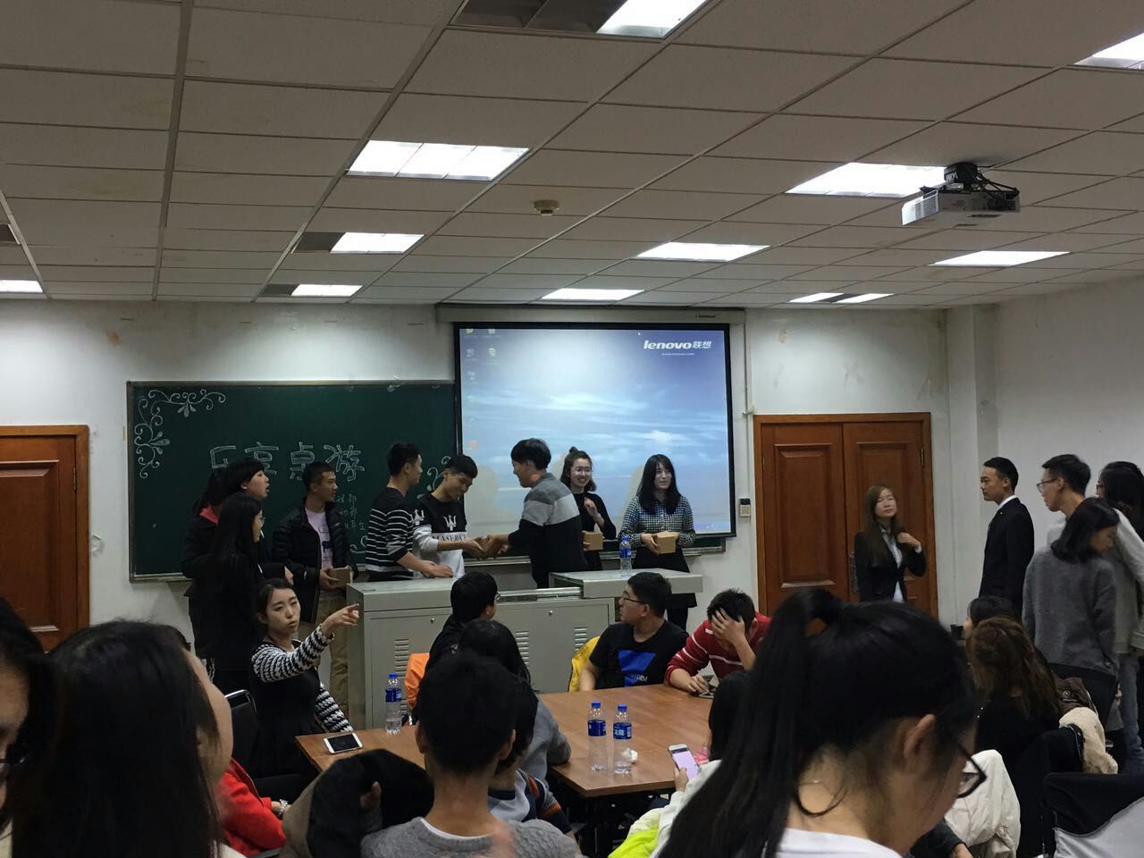 没有辜负同学们的摩拳擦掌,六点半桌游主题活动准时开始。一边进行的是桌游“狼人杀”,同学们围坐一桌开始游戏,随着工作人员的引导,场上气氛时而轻松时而凝重,有眉头紧锁的思考,也有精彩巧妙的陈词,有不幸出局的懊恼也不乏胜利的喜悦。另一边是桌游“UNO(乌诺)”,现场也是笑语不断。游戏结束后,迎来了比赛颁奖的环节。最后,活动在色色视频