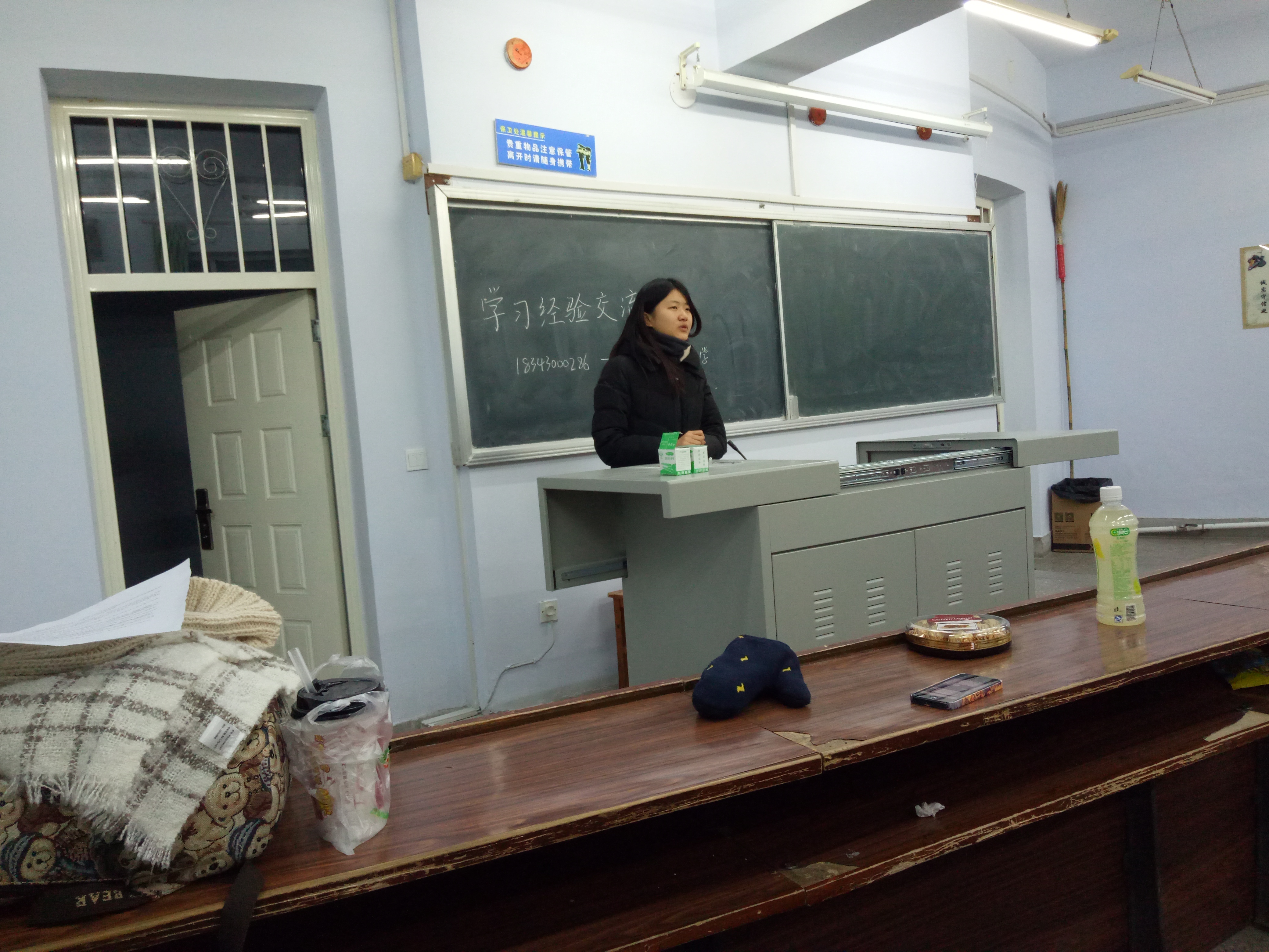 六点整会议开始。首先,主持人上台介绍会议流程。紧接着,商梦晨学姐与我们分享了她的学习经验。认真完成课后习题,不逃课,多自习是她连续三年获得一等奖学金的经验之谈。保送北大研究生的国乃心学姐则为我们强调了英语学习的重要性。平衡社团活动和学习时间,多参加竞赛锻炼自己的能力等都是学姐为我们提出的建议。