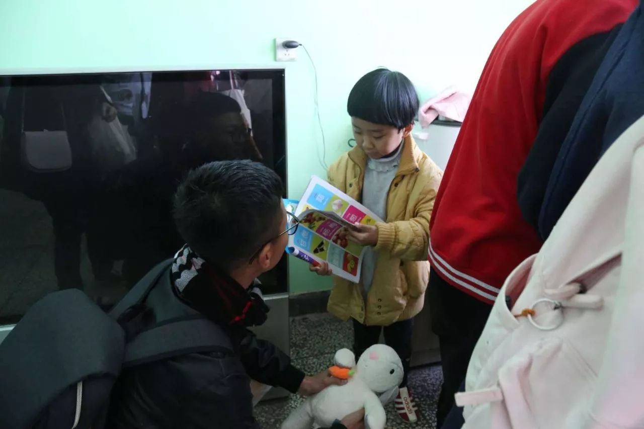 志愿者们早上八点十分在北门乘校车准备出发,达到目的地后,每两人和一个孩子组成一组。每位志愿者都给孩子们准备了折纸,画笔,拼图,零食等礼物,孩子们十分喜欢收到的礼物。志愿者们有的和孩子聊天,有的和孩子们一起做游戏,相处十分融洽,孩子们也沉浸在温暖的氛围中满脸笑容。志愿者还为孩子们准备了小节目,孩子们玩得很开心,他们的笑容比阳光还要灿烂。