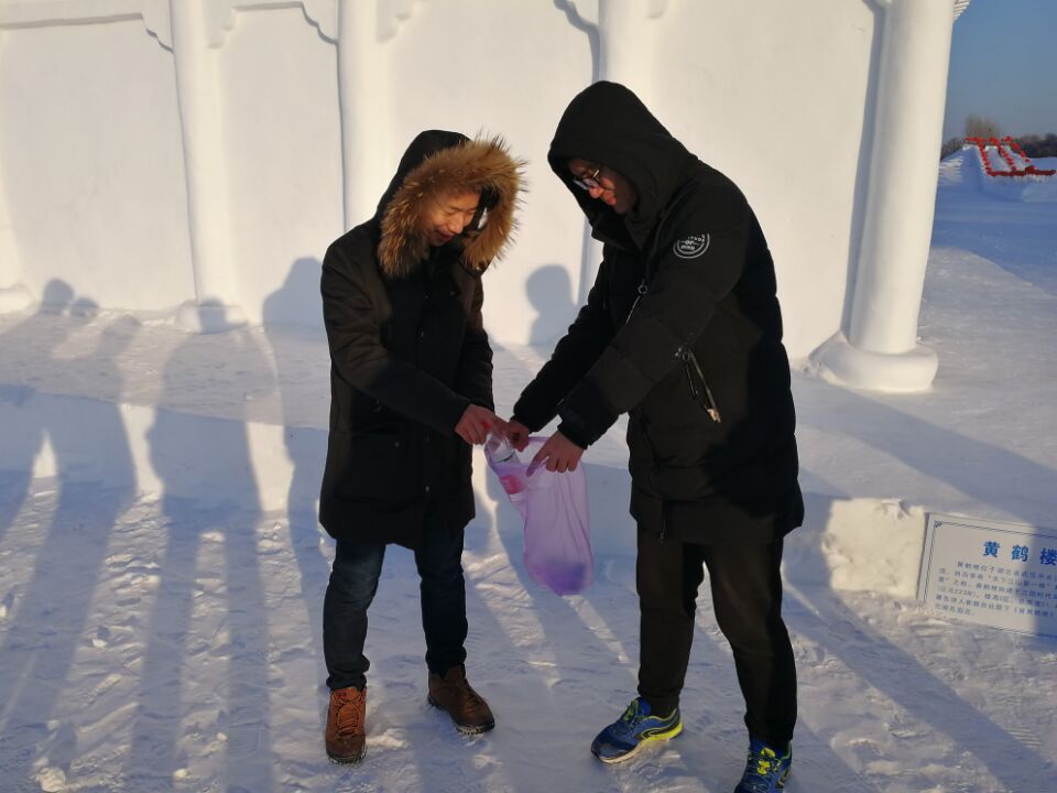 此行为了深刻体会生态环境保护对于当下国家及个人的意义,我们首先做了充分的资料收集,卫生状况对于一个城市的风貌有着重要作用,长春市净月风景区为国家五A级风景园区,显示着长春市的文明面貌,而偶尔存在的各种垃圾会影响她的整洁与魅力,而于皑皑白雪之中更是如此。