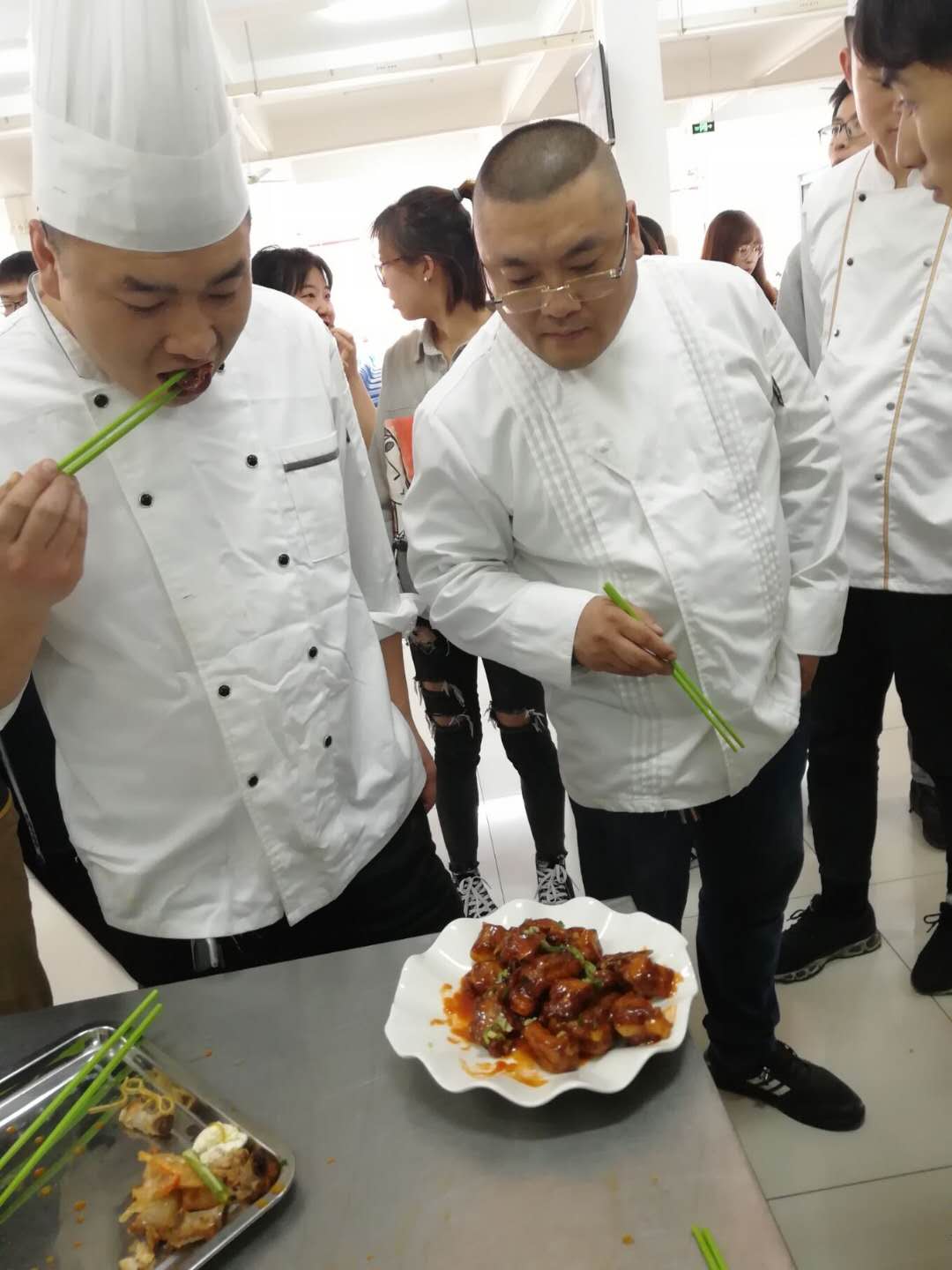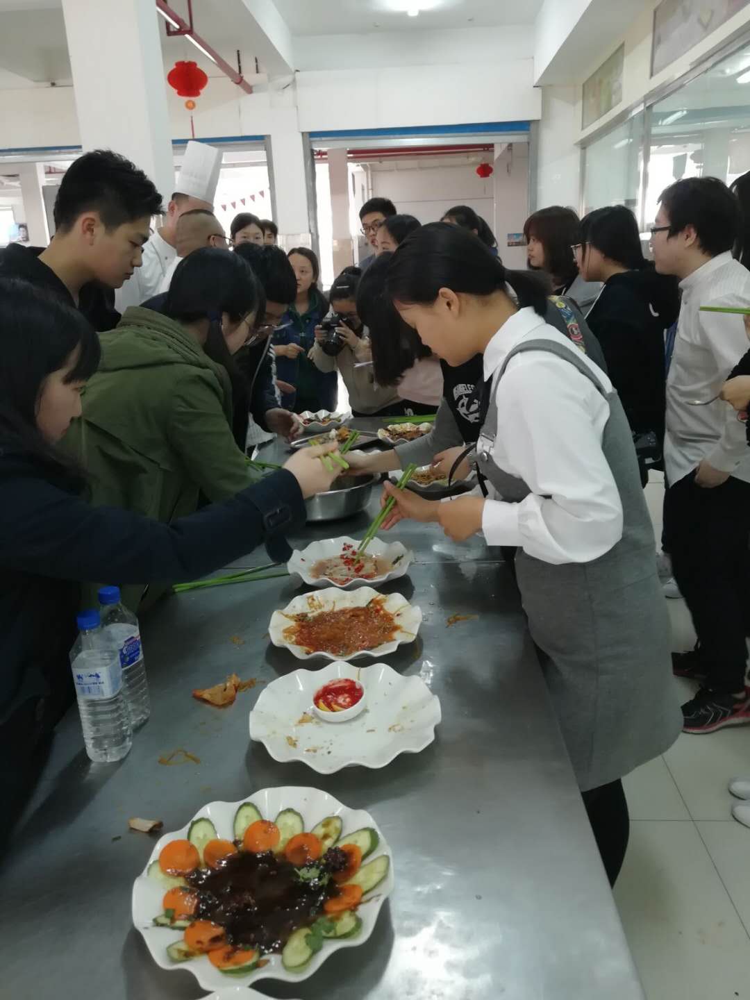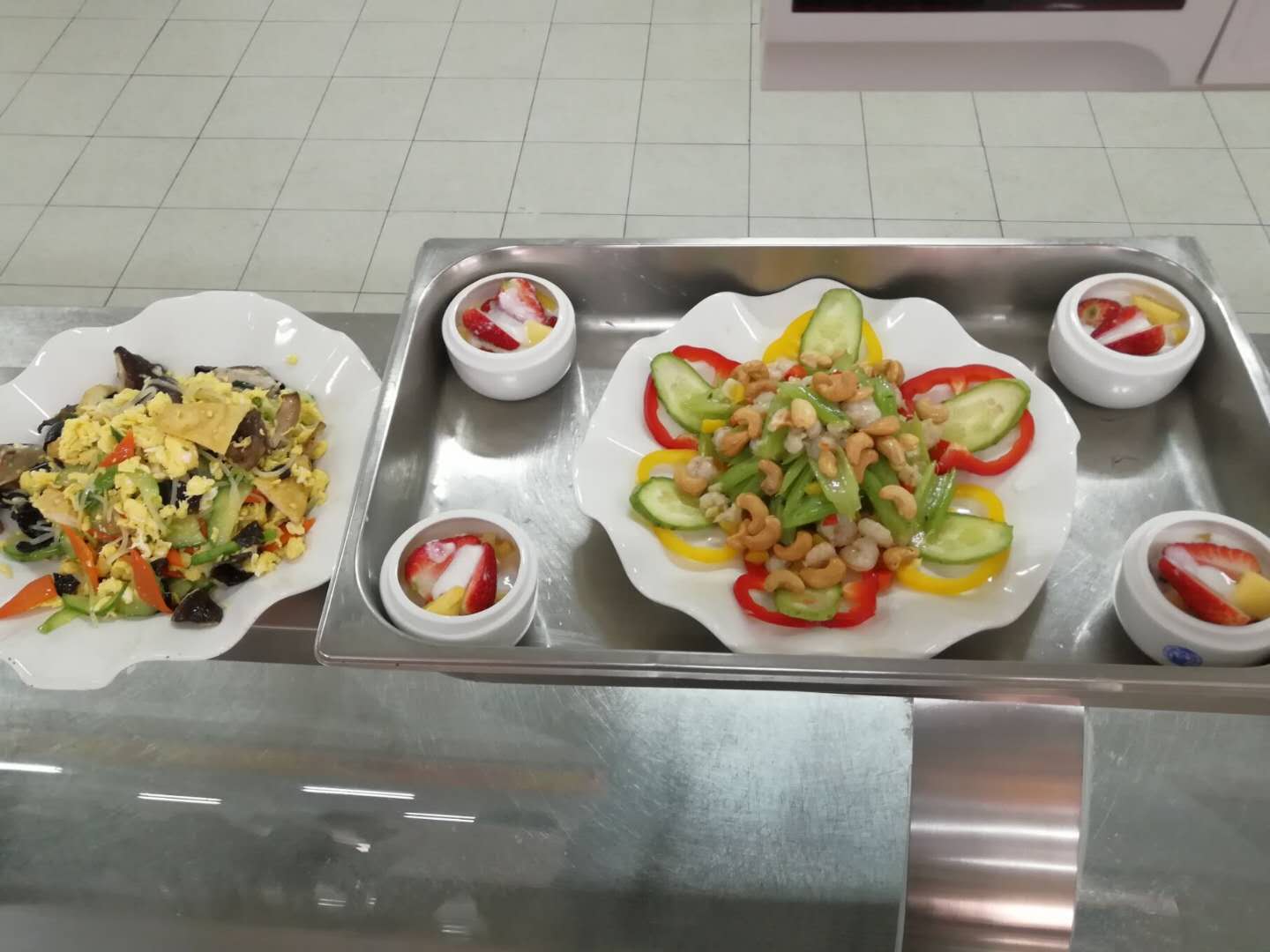在主办方的安排下,每个小组按次序进入干净整洁的食堂后厨。比赛开始后,同学们纷纷拿出准备好的食材,投入到美食的制作中。洗菜的同学细致用心,不放过每一根菜;切菜的同学技巧娴熟,不一会儿就将姜块切成了细末。炒菜时更有师傅在旁边时时关注,确保同学们的安全。最引人注意的是有心灵手巧的同学做起了饺子,和面、擀皮、剁馅、包饺子,忙而不乱。不过一会儿,厨房里飘满了肉的鲜香,让人沉浸在这儿无法自拔。快的小组已经开始摆盘了,看到他们摆好的作品,还以为出自大厨之手呢。