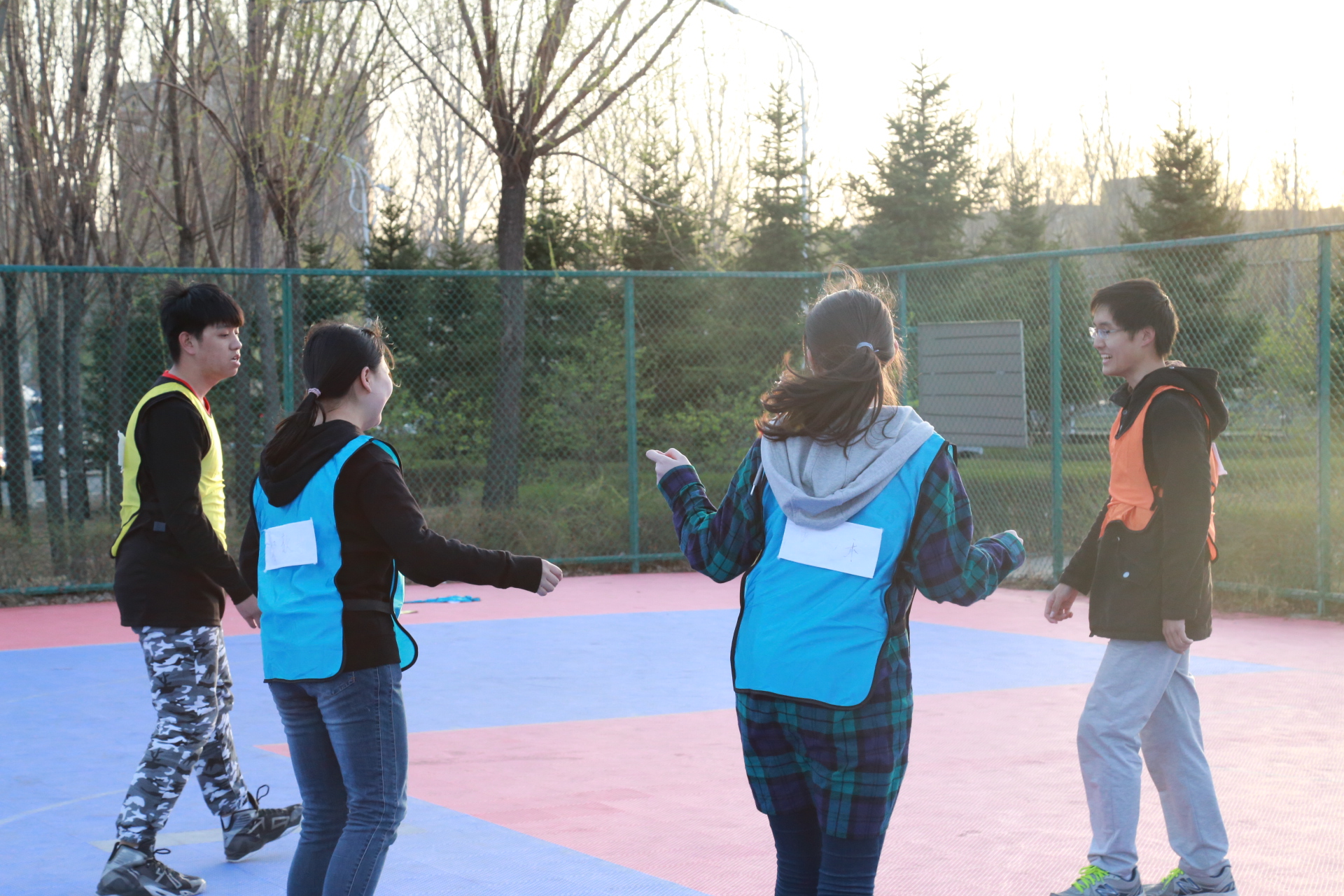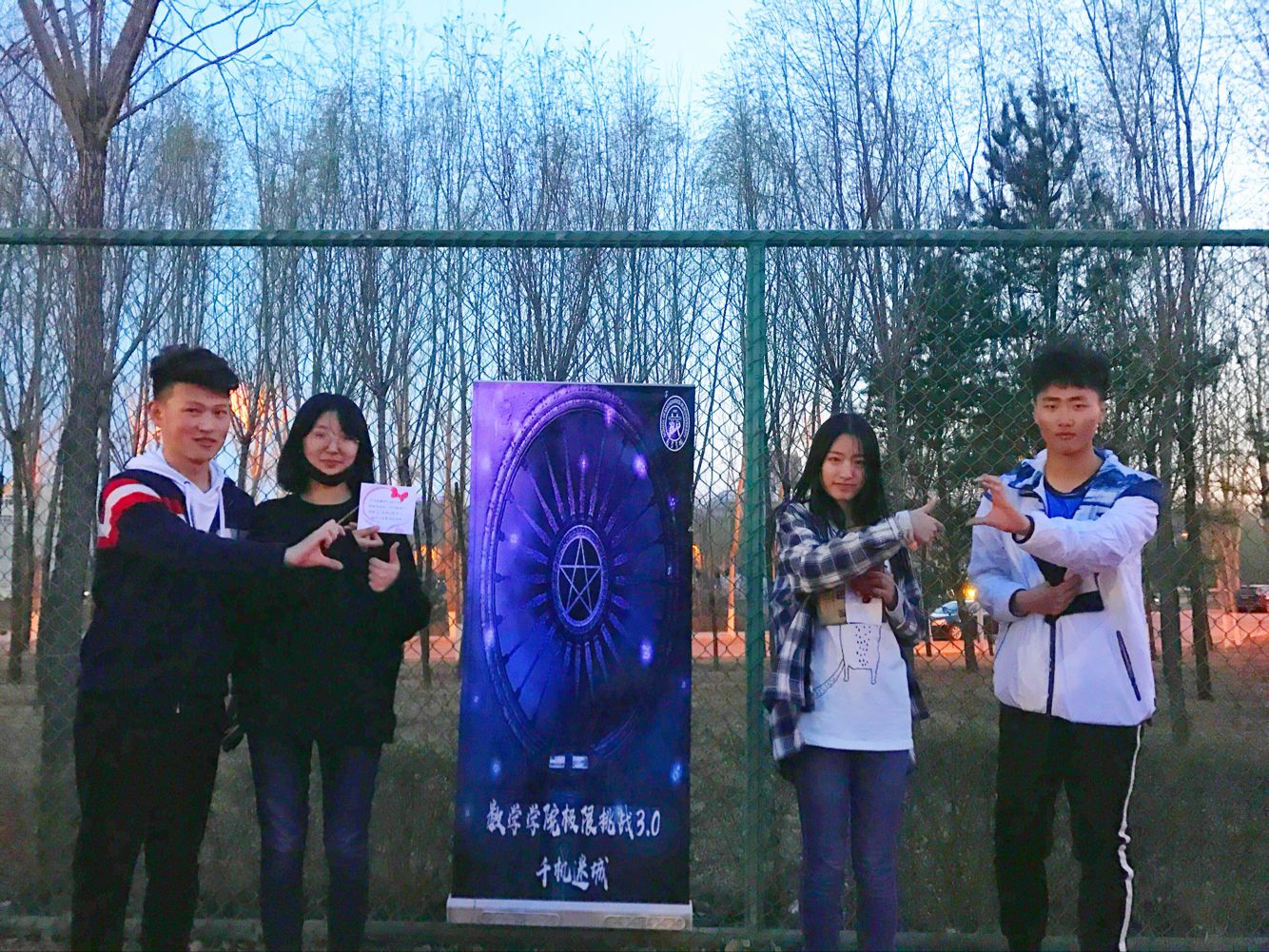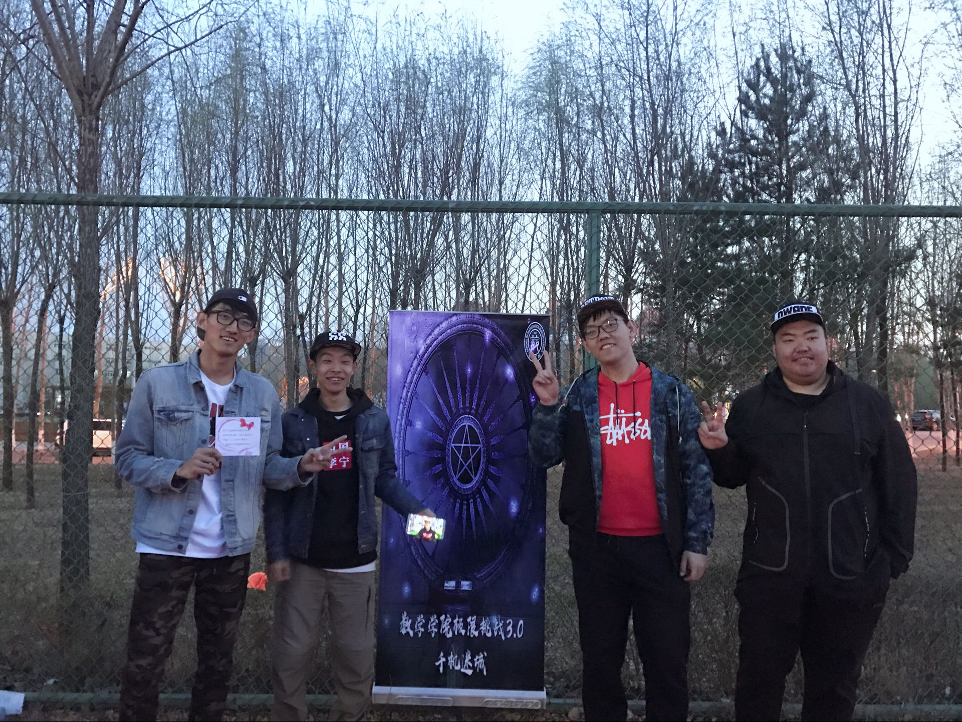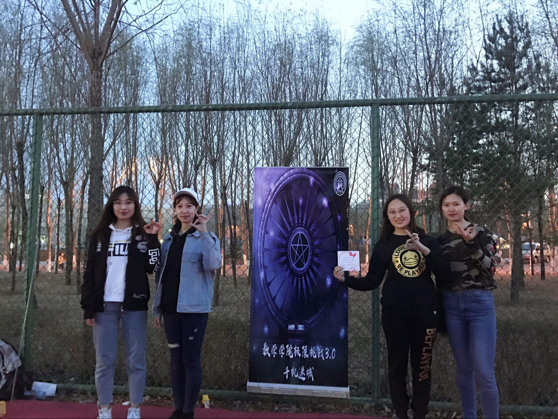 下午一点整,活动正式开始。此次活动以人工智能统治世界为背景,要求参赛队员们逃出被人工智能掌控的“虚拟世界”,掌握算法,拯救人类。经过前期精巧的设计,主办方以生动的故事为主线,分别在清湖、轮滑场、日新楼、体育场、篮球场安排了兼具趣味性与挑战性的任务。在清湖,参赛人员集合,由主持人说明游戏背景,大家开始了极限挑战之旅;在轮滑场,参赛队员们开始“热身阶段”,进行“背对背拥抱”,“8字跳跳跳”,“盲人摸象”游戏,完成了对彼此间默契程度的挑战;在日新楼,同学们进行了“恐怖黑箱”、“旋风摄影师”、“数字捕手”游戏,通过将手伸入黑箱猜测箱内物体,根据下发的图片信息找到拍摄地点,找到菜单上菜品价格来获得游戏线索;在体育场,大家默契配合,一同完成了吸管传纸环的比拼,绑腿走路进行擂台大拍照,一人背一人做气球杀手;在篮球场,参赛成员先折返跑并模仿动作,后在指压板上完成指定任务,最终的撕名牌活动使游戏进入高潮,大家全身心投入,为此次活动画上了圆满的句号。最后“平民窟女团”、“ 小猪佩琪说的队