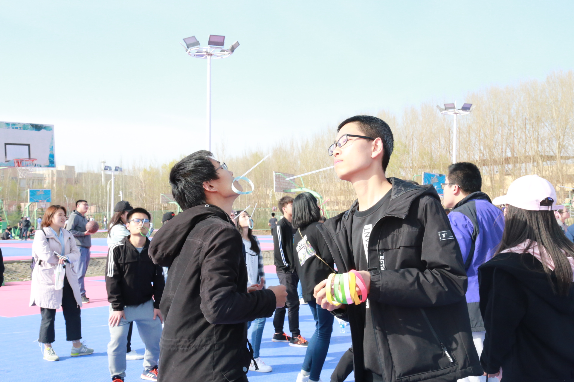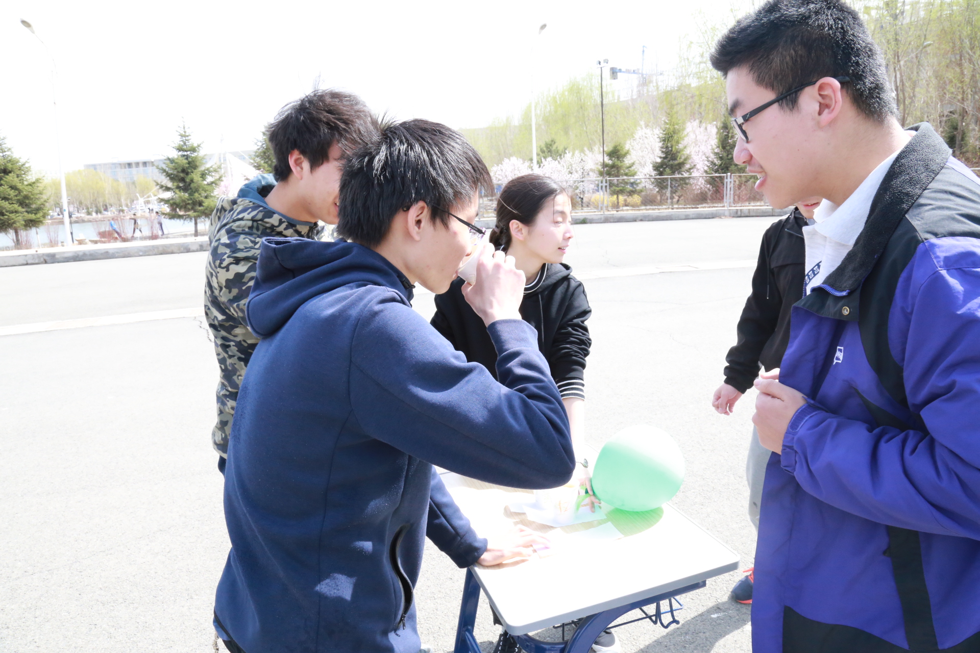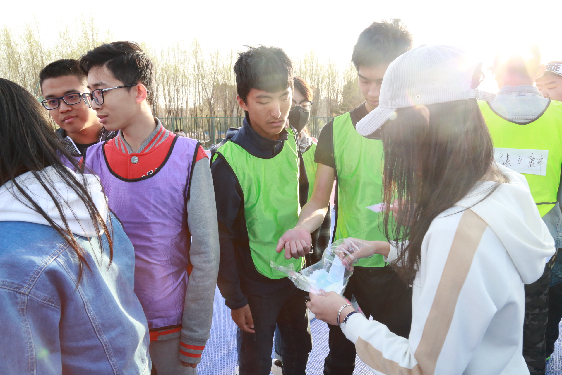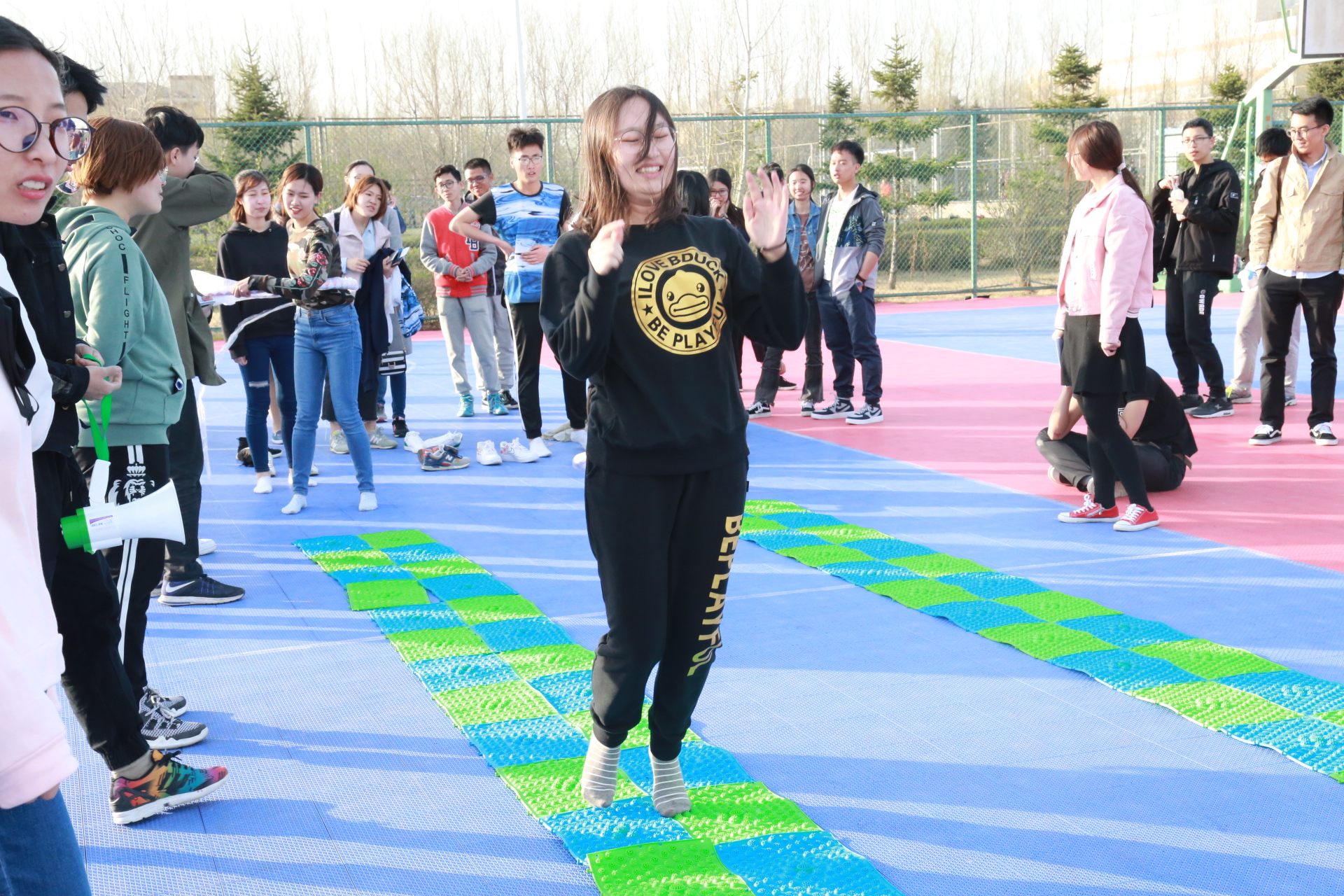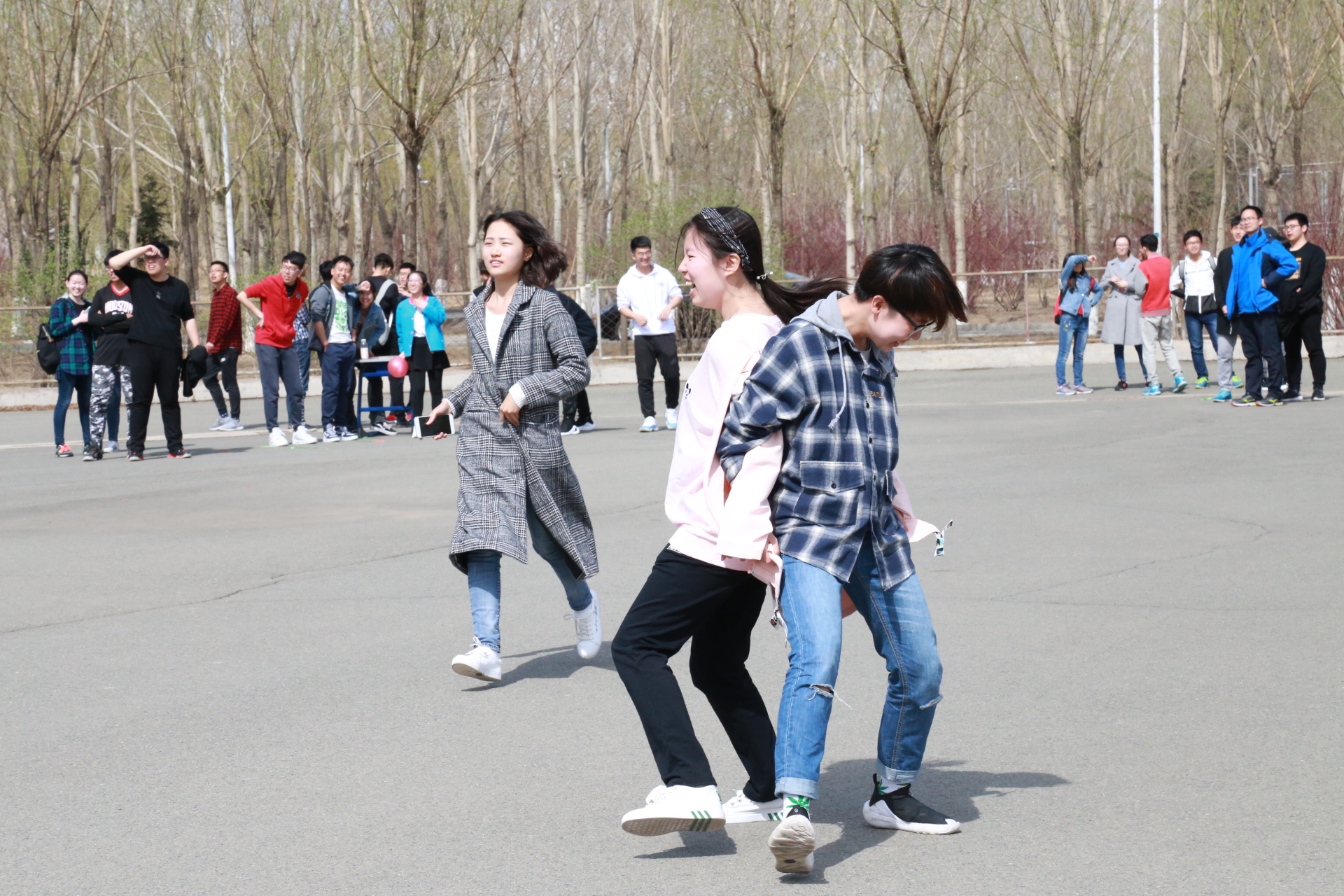 下午一点整,活动正式开始。此次活动以人工智能统治世界为背景,要求参赛队员们逃出被人工智能掌控的“虚拟世界”,掌握算法,拯救人类。经过前期精巧的设计,主办方以生动的故事为主线,分别在清湖、轮滑场、日新楼、体育场、篮球场安排了兼具趣味性与挑战性的任务。在清湖,参赛人员集合,由主持人说明游戏背景,大家开始了极限挑战之旅;在轮滑场,参赛队员们开始“热身阶段”,进行“背对背拥抱”,“8字跳跳跳”,“盲人摸象”游戏,完成了对彼此间默契程度的挑战;在日新楼,同学们进行了“恐怖黑箱”、“旋风摄影师”、“数字捕手”游戏,通过将手伸入黑箱猜测箱内物体,根据下发的图片信息找到拍摄地点,找到菜单上菜品价格来获得游戏线索;在体育场,大家默契配合,一同完成了吸管传纸环的比拼,绑腿走路进行擂台大拍照,一人背一人做气球杀手;在篮球场,参赛成员先折返跑并模仿动作,后在指压板上完成指定任务,最终的撕名牌活动使游戏进入高潮,大家全身心投入,为此次活动画上了圆满的句号。最后“平民窟女团”、“ 小猪佩琪说的队
