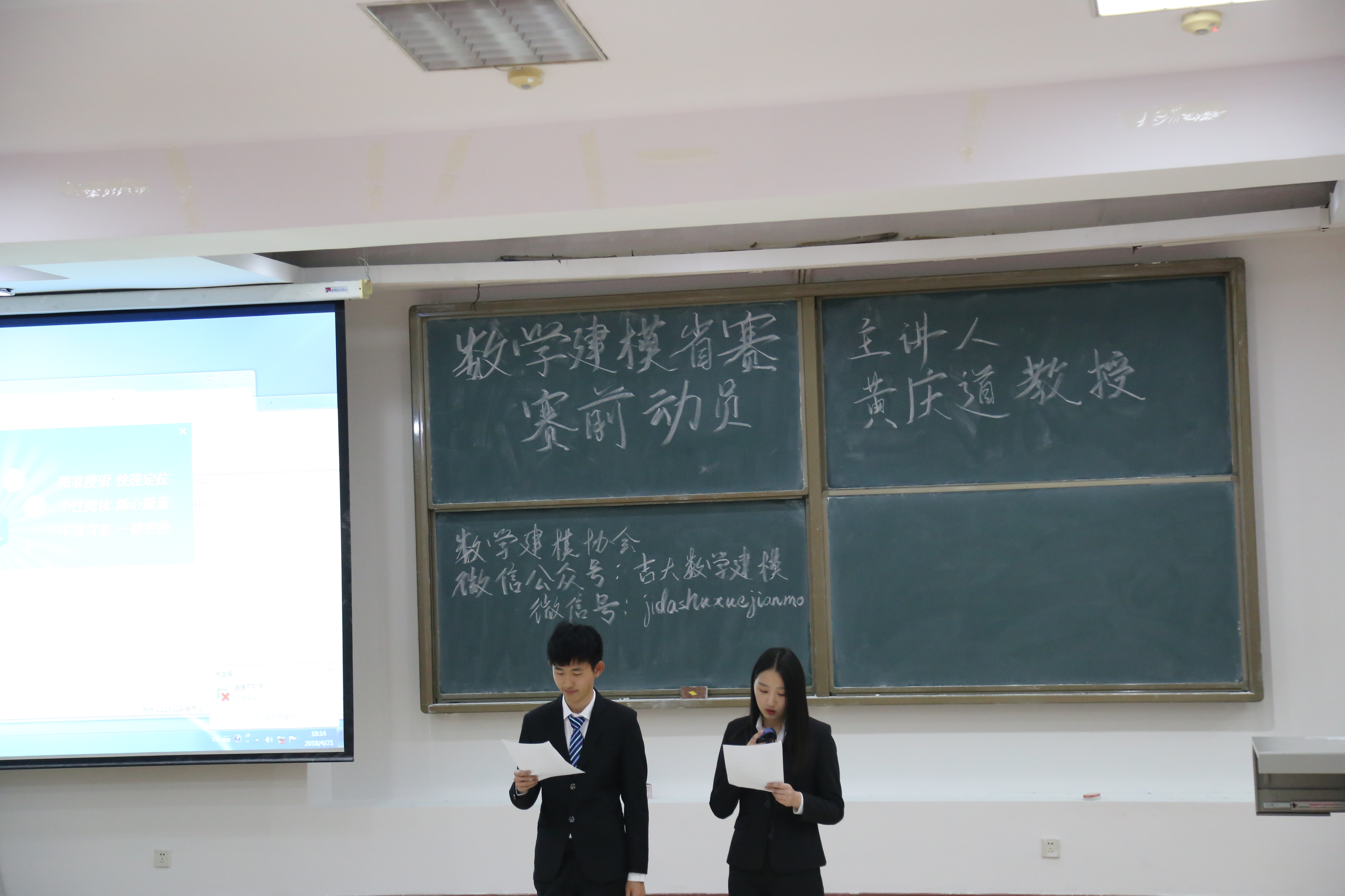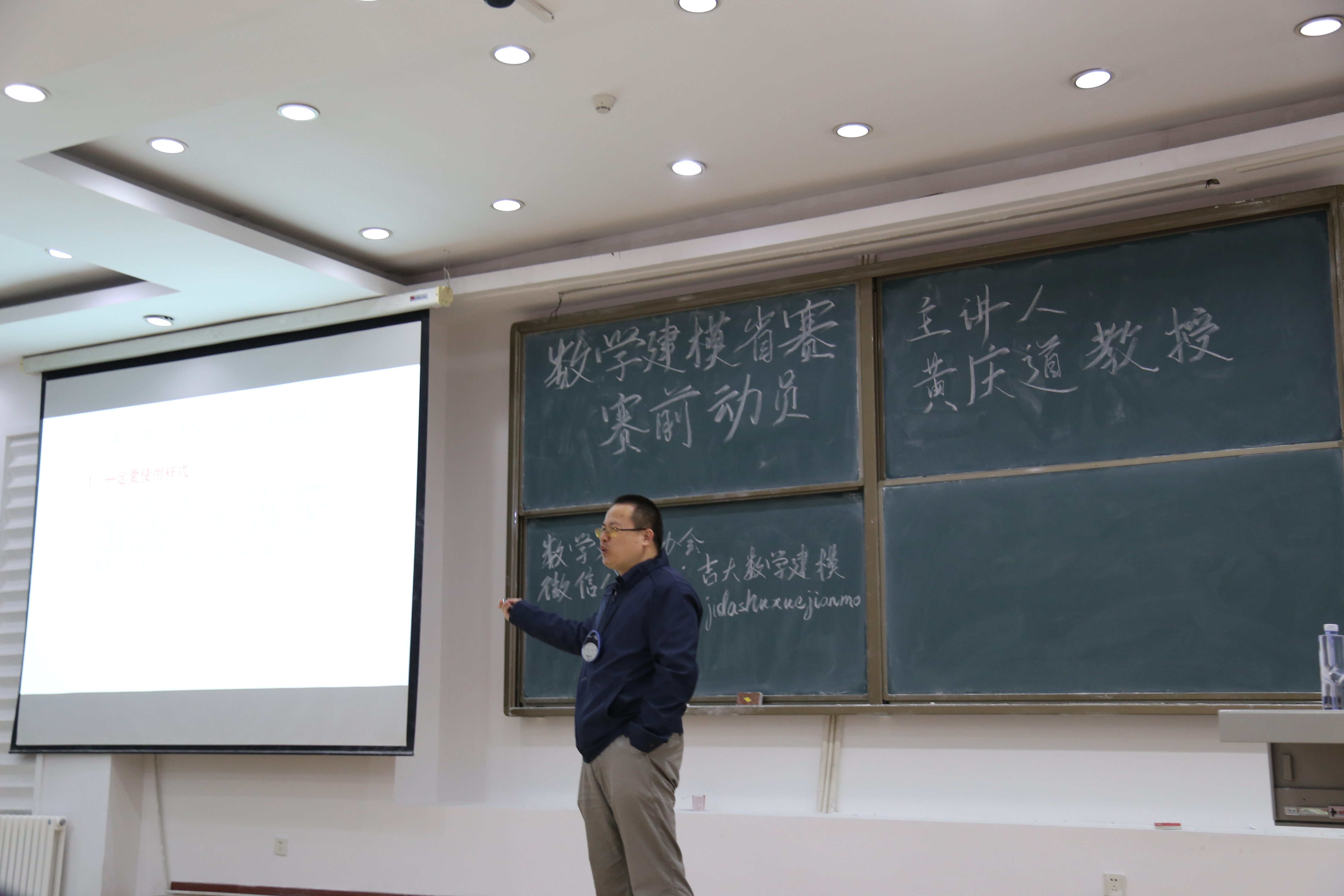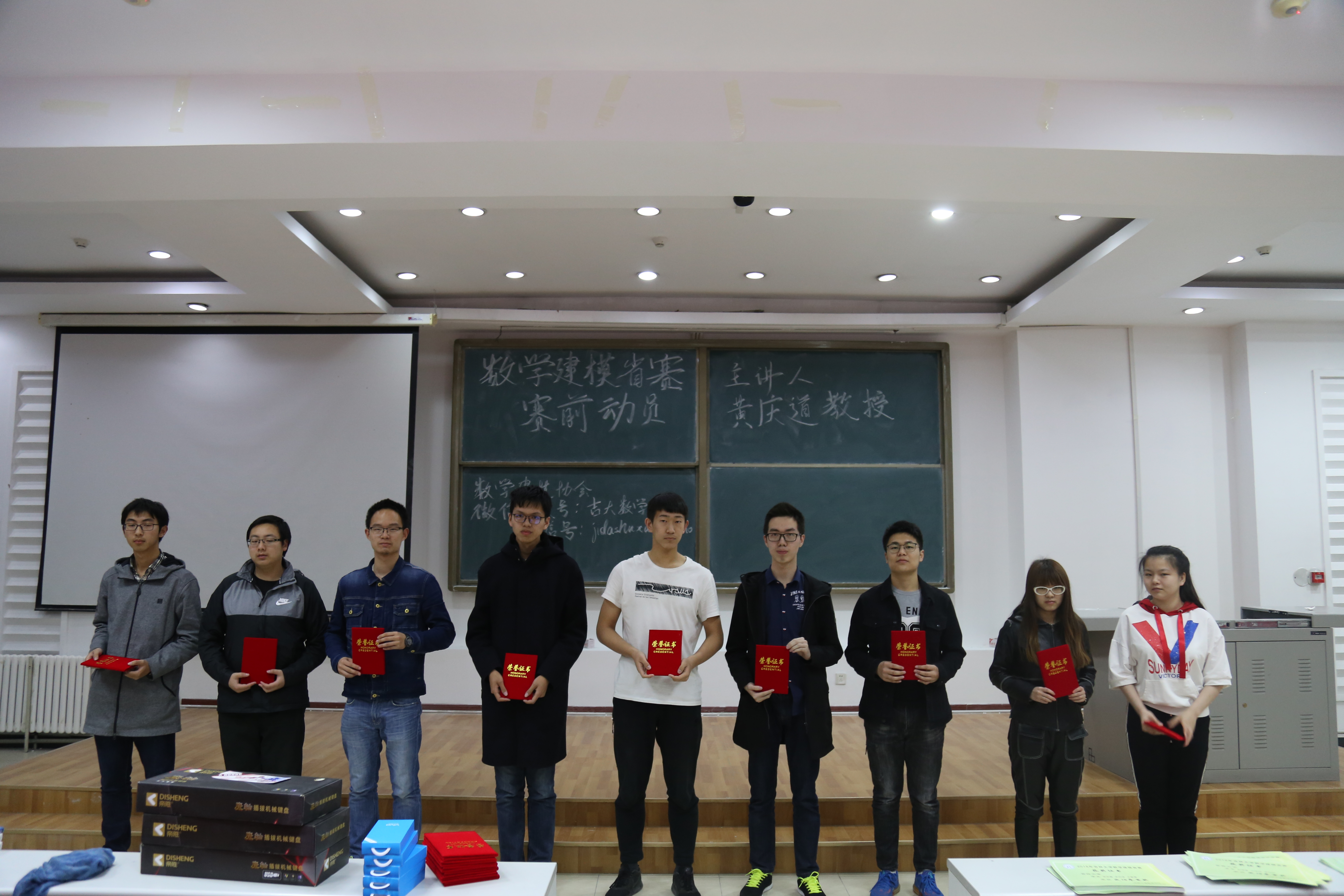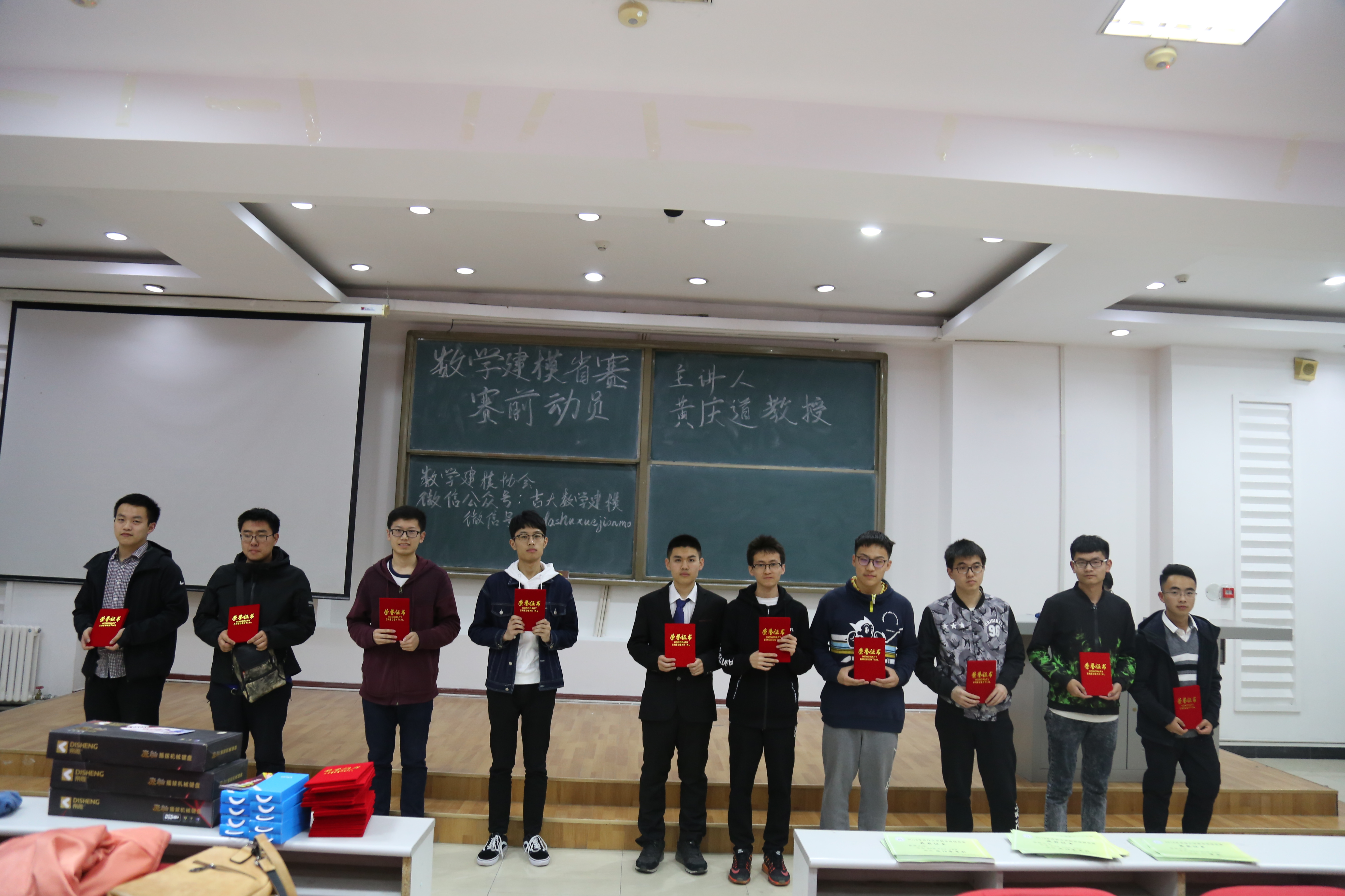首先进行了颁奖典礼,共有一等奖一名,二等奖三名,三等奖五名。并由建模协会副部为获奖同学颁发证书与奖品。接着开展了数学建模讲座,我们邀请到黄庆道教授进行了细致且专业的试题解读。黄教授按照数学建模的过程、数学建模常用方法、数学建模论文写作技巧、搜索建模简介、数学建模经验五个部分进行么了深入浅出的讲解,针对学生共有的困惑进行解答。在场同学认真听讲,思维紧跟,收获颇丰。最后,建模协会成员与黄庆道教授合影留念。活动圆满结束,让我们共同祝贺获奖的同学,也希望没有获奖的同学不要气馁,再接再厉!栉风沐雨,砥砺前行!