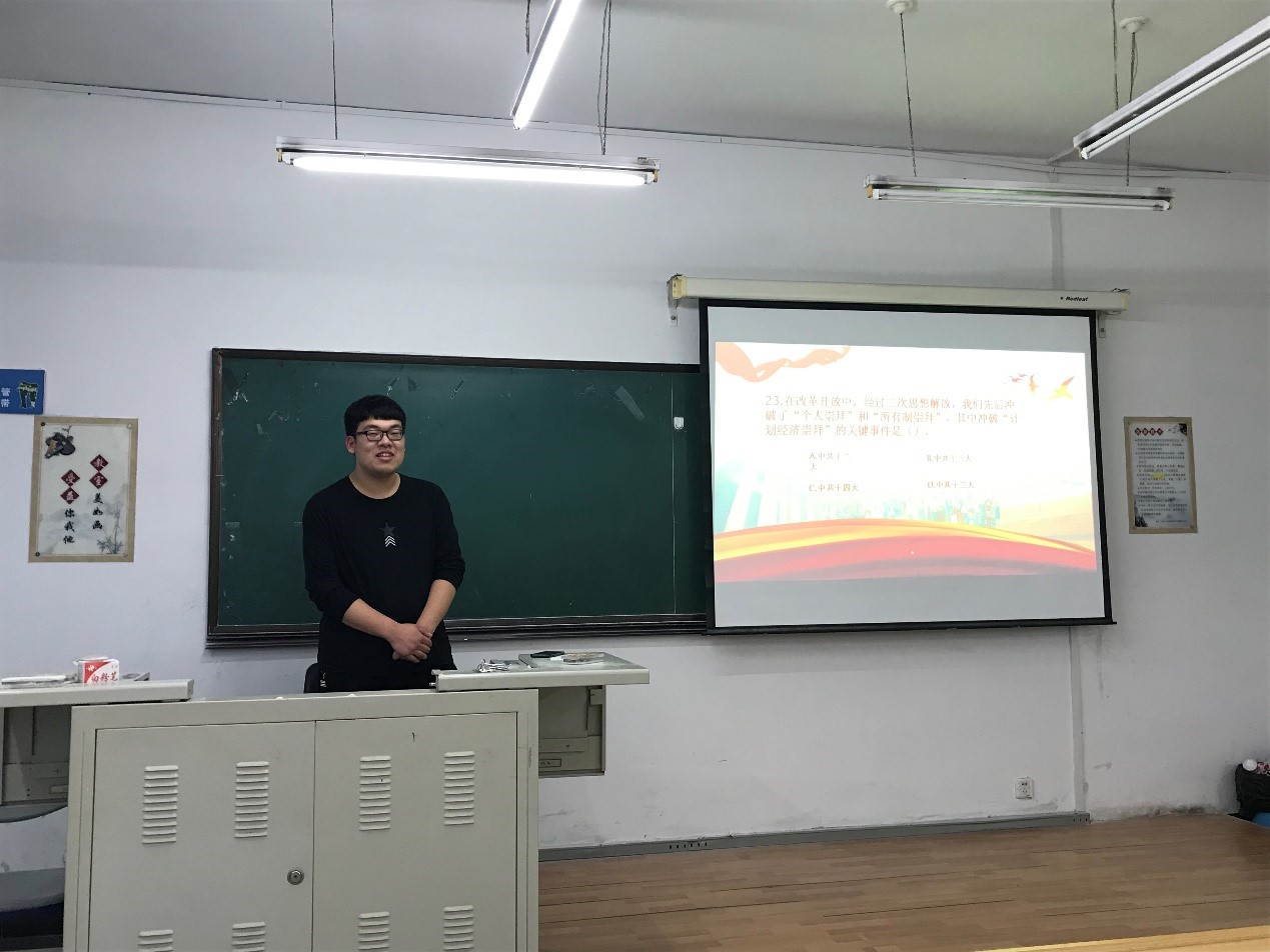 此次活动主要分为三个部分,分别为“改革开放知多少班会”,“深入了解改革开放读书会”,“你我眼中的改革开放采访”。三个活动由浅至深,层层深入,让同学们从改革开放的相关知识开始学习,到有自己的体会,最后大家互相交流,升华思想。