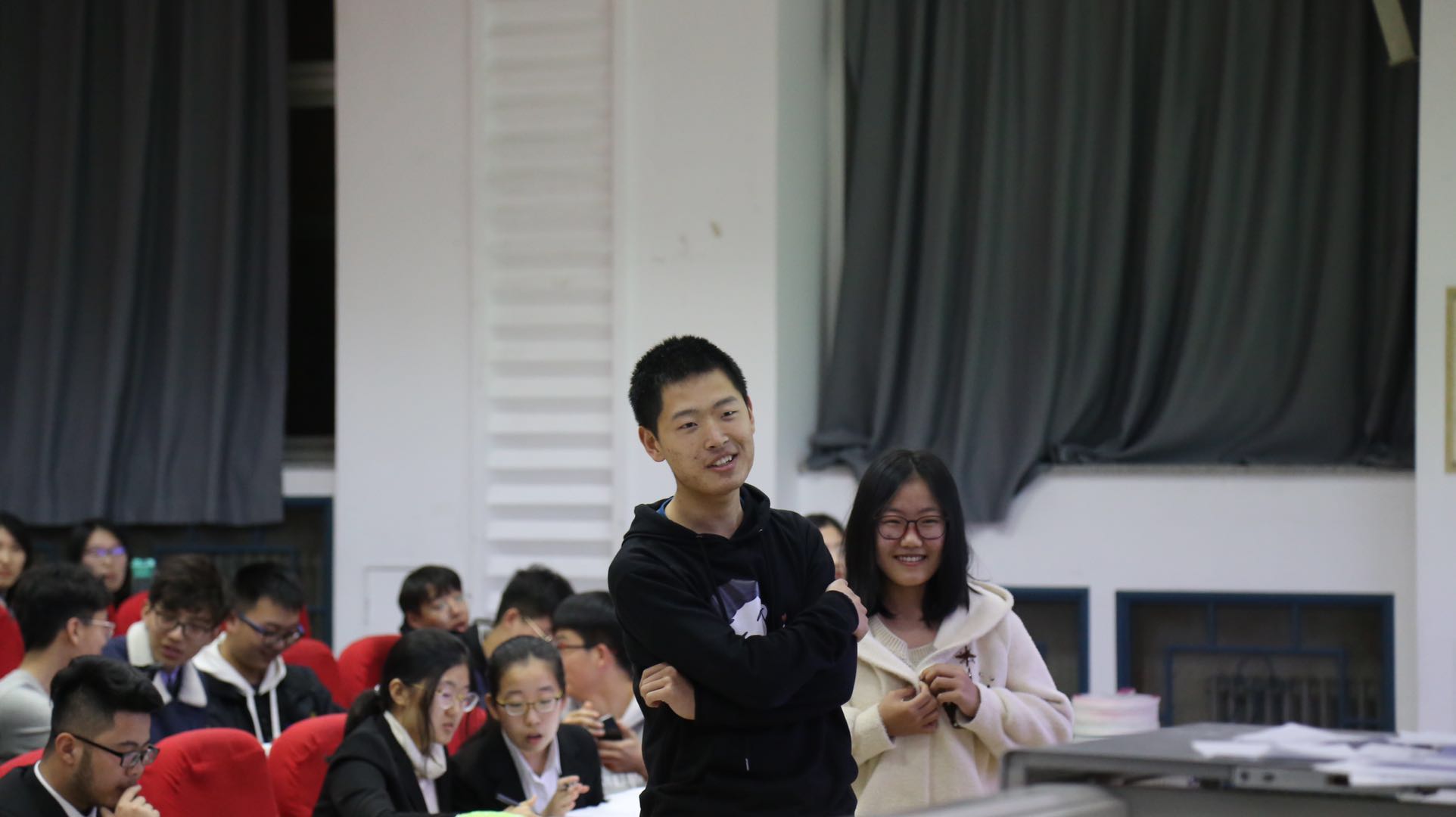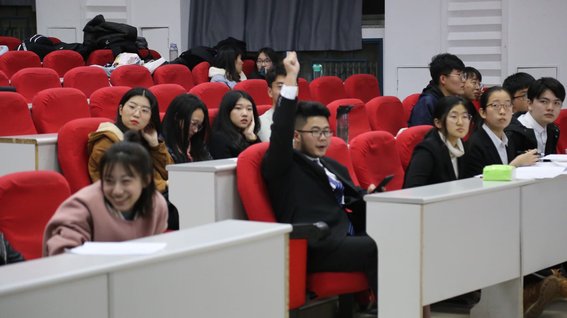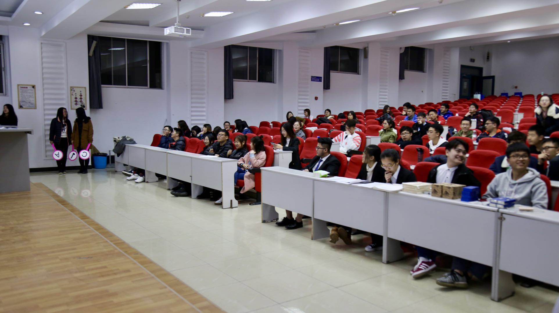 到场嘉宾有学生会主席邱韵,团委副书记李潇琦,学生会副主席高明睿,学生会副主席张民昊,生活部部长宋成鑫,团委社会实践部部长赵玉冰,权益保障部部长林静。晚上六点三十分,伴随着热烈的掌声,和同学们激动的心情,一站到底知识竞赛活动正式开始。