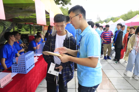 2019级新同学”的标牌上签下了自己的名字,并合影留念。
