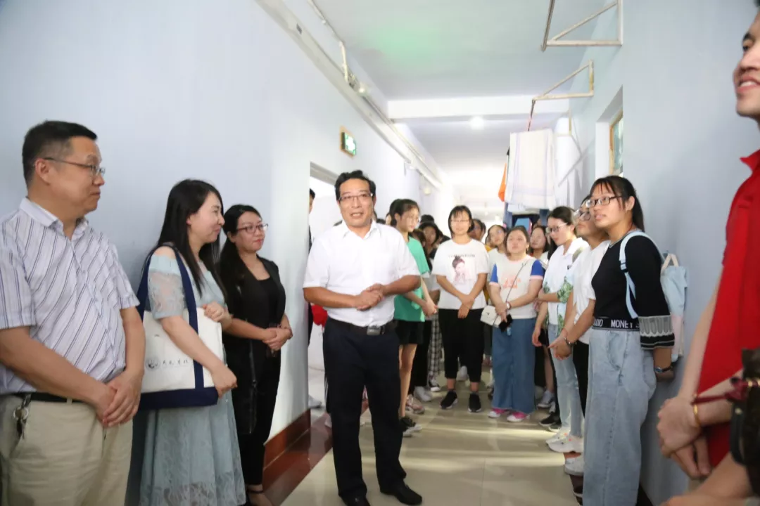 院长李辉来,副院长史少云,副院长张然,党委副书记兼纪委书记王欢,党委副书记兼副院长范庆文以及辅导员李庚、曹馨月来到大学生第二公寓和大学城第三公寓走访看望新生。