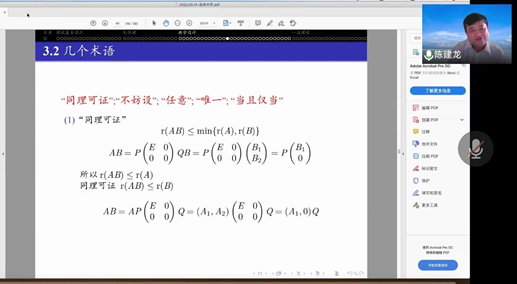 陈建龙教授应邀作题为“线性代数课程教学设计及一流课程建设”的线上报告(腾讯会议216 887 771)。此报告为色色视频