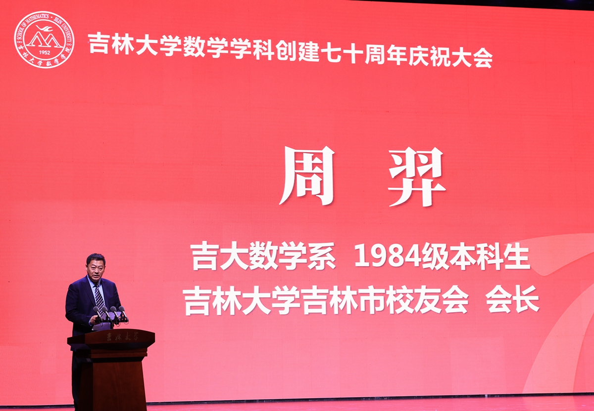 吉林市校友会会长、吉林长荣农副产品有限公司董事长周羿作为校友代表发言时回忆了在吉大求学难忘瞬间,深情表达了对母校和恩师的感激之情。他们衷心祝愿吉大数学发展越来越好,培养出更多优秀人才,也将尽己所能为母校的发展贡献力量。