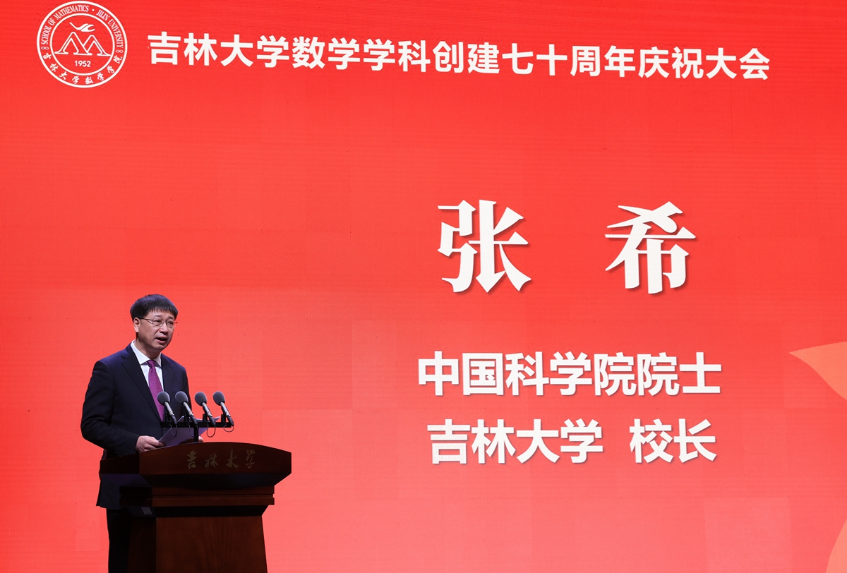 最早建立的基础学科之一,数学学科在国家历次重大学科战略布局中,均在首批之列。张希指出,70年来,吉大数学学科既面向数学前沿,求真求美,又聚焦国家战略需求,主动搭建高水平创新平台,承担重大科研任务,取得了多项重要科研成果。众多吉大数学学子在各自岗位上坚守奉献,为祖国的各项事业作出了重要贡献。张希强调,严谨务实、锐意创新、敢于人先是吉大数学人鲜明的特色。希望数学学科赓续传统,不断提高公共教学水平,为校内各相关专业的人才培养打下坚实的数理基础。以“数学+”为载体,与校内各专业领域开展科研合作,切实发挥数学对其他基础学科以及应用学科的支撑作用。同时,希望数学学科继续以一流学科建设为核心,进一步加强基础学科人才培养,提升原始创新能力,努力发挥国家天元数学东北中心、吉林国家应用数学中心等国家级平台的支撑作用,早日建成国家和区域重要的数学学科人才中心和创新高地。
