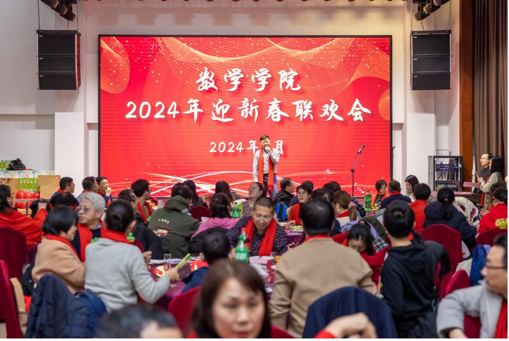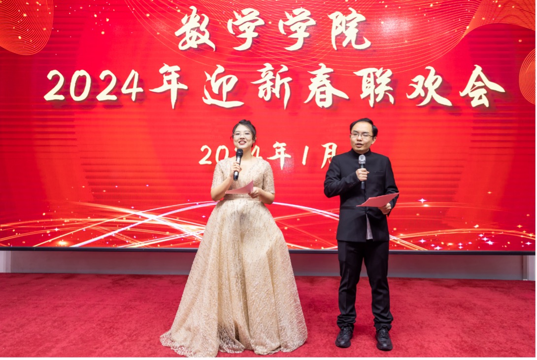 友谊会馆隆重举行。学院全体教职工欢聚一堂,共贺新春,共展宏图。本次联欢会由计算数学系吴畏和基础数学系侯帅两位老师主持。
