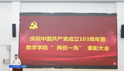 为庆祝中国共产党成立103周年,继承和发扬党的优良传统,激励广大党员牢记党的宗旨、坚定理想信念、强化党员意识、激发学习工作热情,更好地发挥共产党员的先锋模范作用,6月20日,色色视频 党委在数学楼二楼报告厅召开庆祝中国共产党成立103周年暨“两优一先”表彰大会。党委副书记陈续升主持会议并宣读表彰决定。