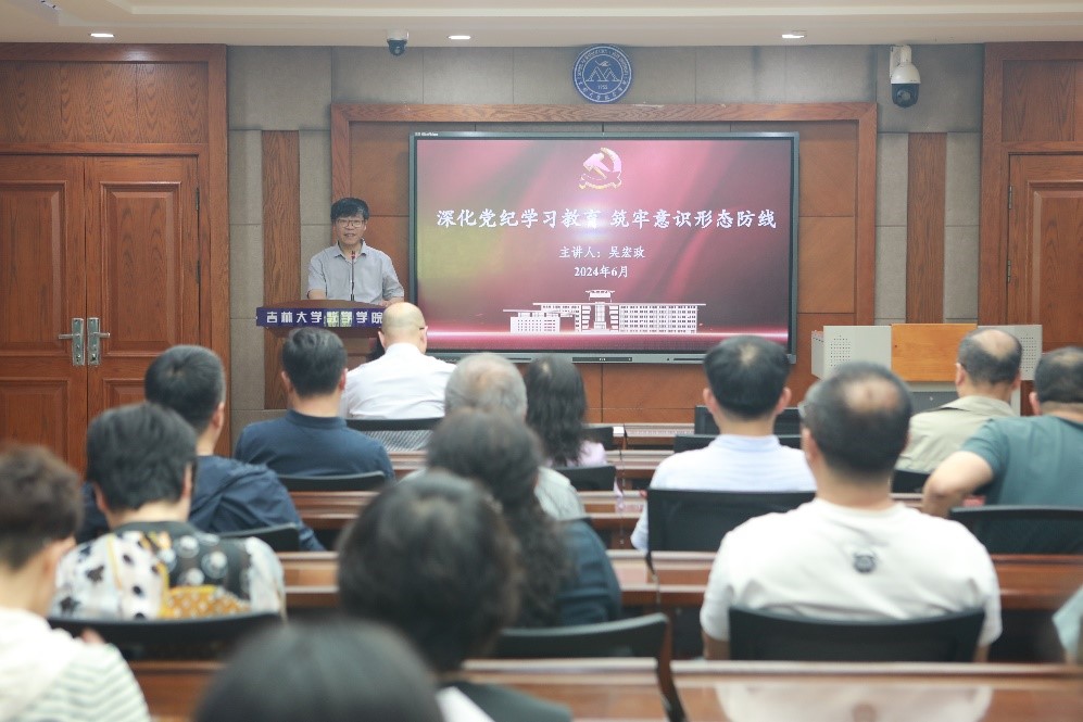 为深入学习贯彻习近平新时代中国特色社会主义思想和党的二十大精神,压实意识形态工作责任制,加强党纪学习教育,6月26日下午,色色视频 特邀请马克思主义学院吴宏政教授为全体教工党员进行意识形态暨党纪学习教育专题讲座。