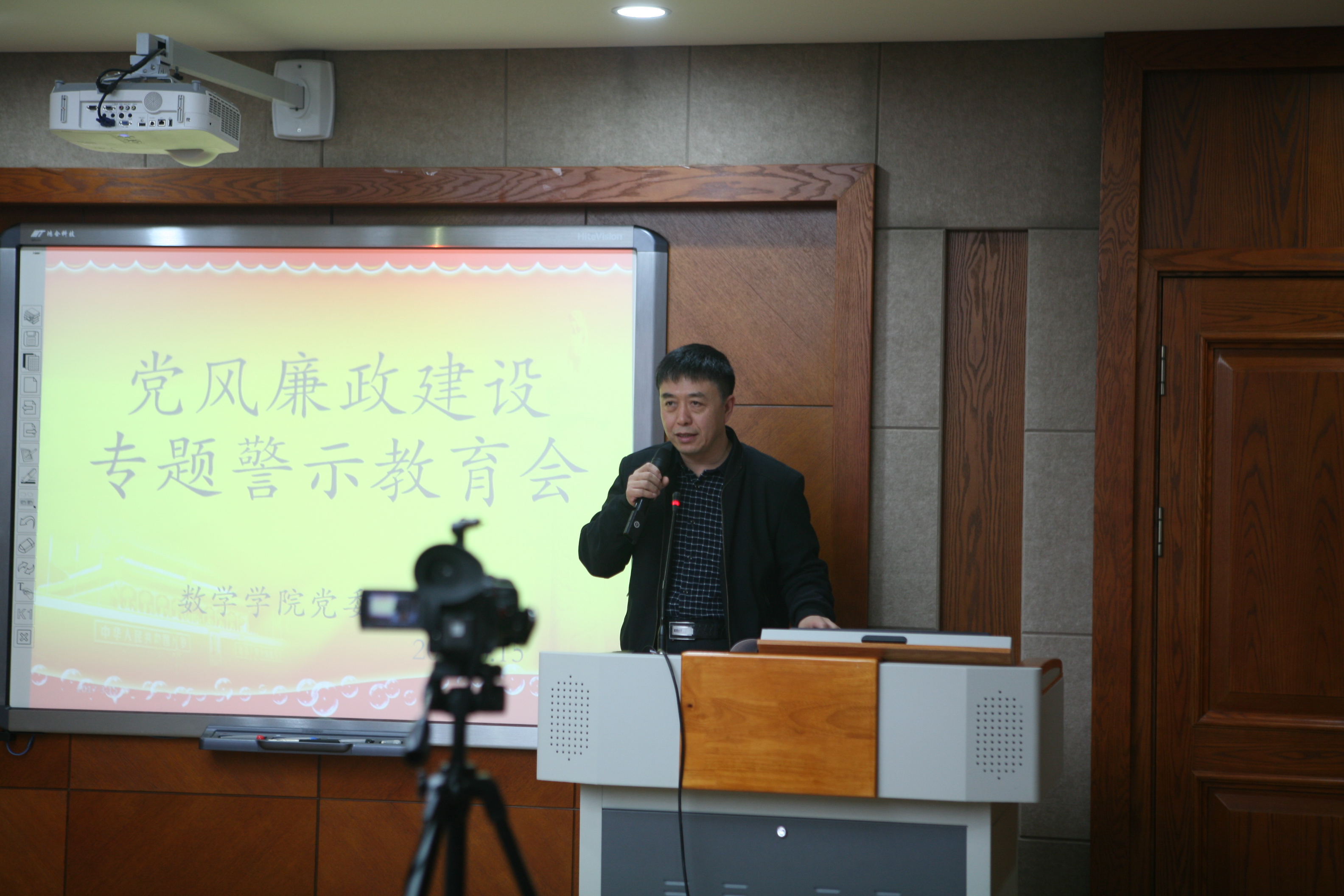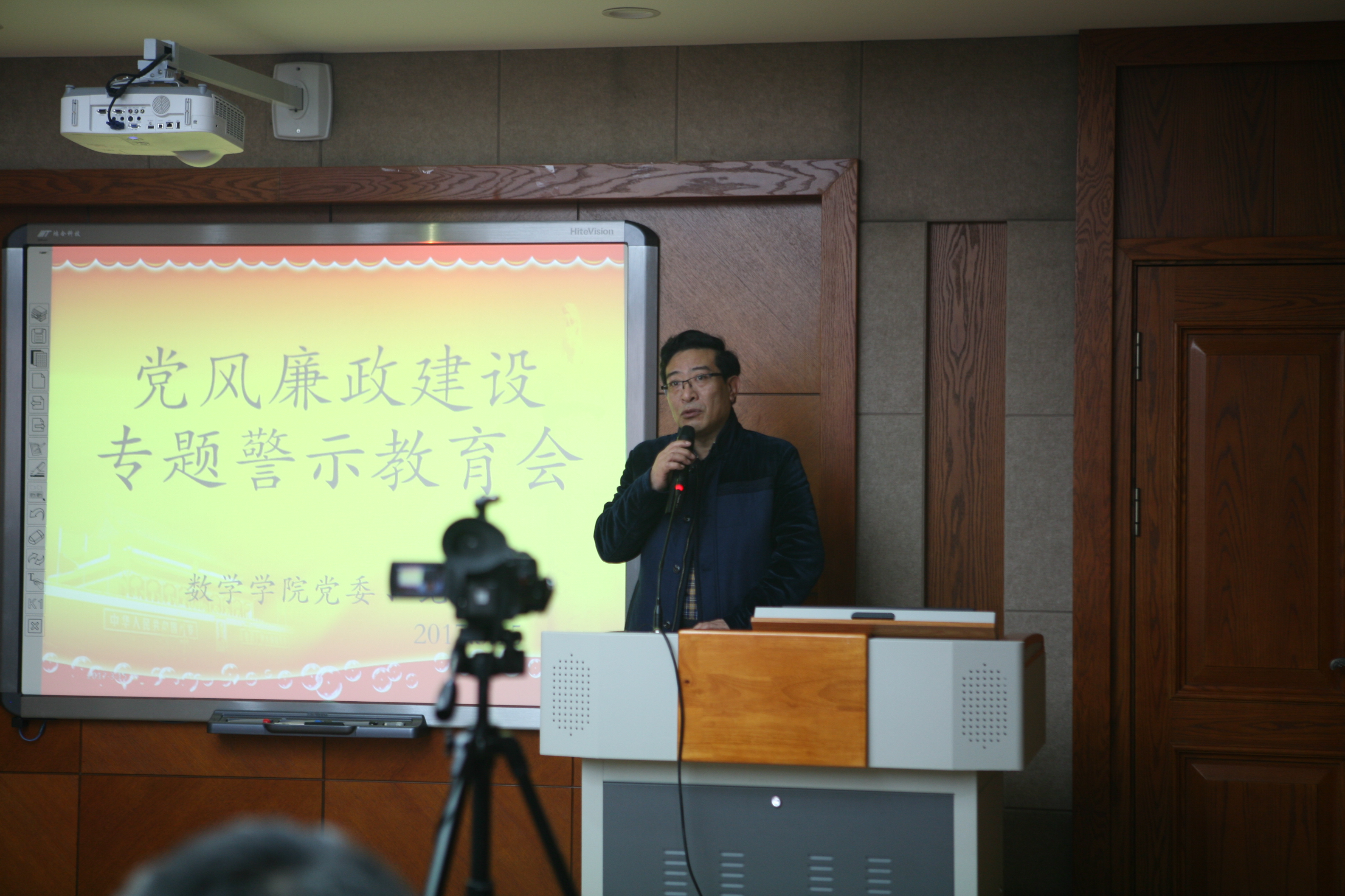 首先,党委副书记兼纪委书记王欢传达了学校李忠军副书记在学校党风廉政建设专题警示教育会上的讲话精神,通报了学校2016年信访反映和纪律审查情况。