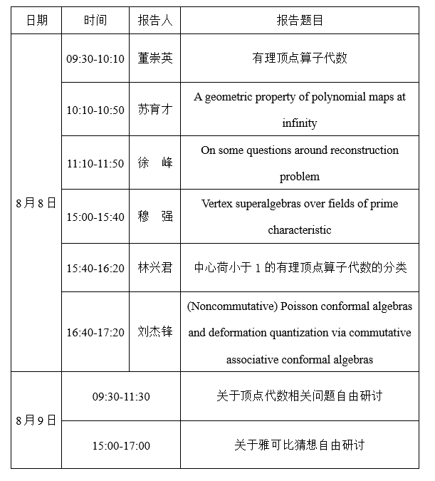 代数学研讨会会议日程
