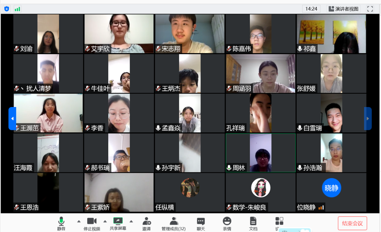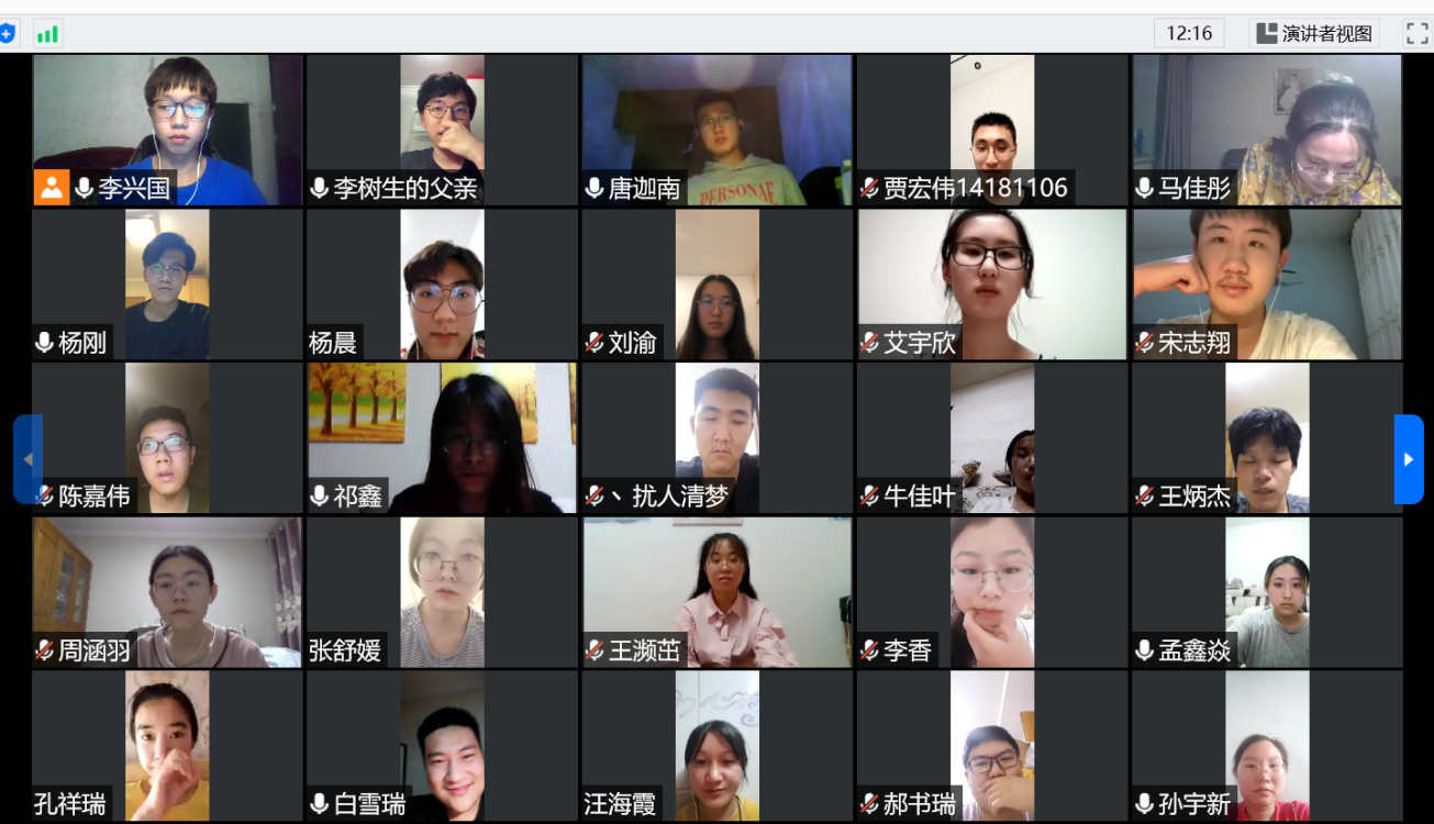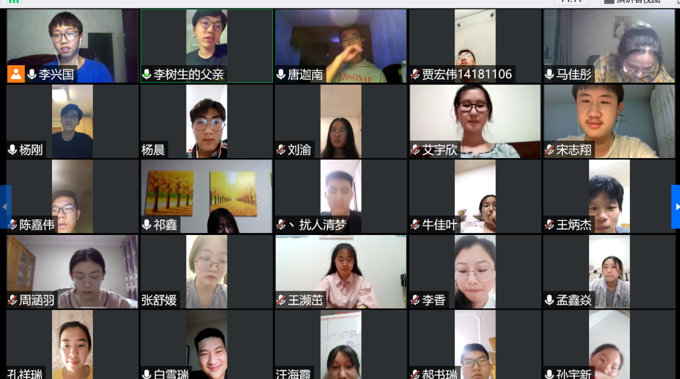 接下来,大家分享了在家学习的生活,同学们有的分享了自己最近读了哪些书,有的分享了自己和家人是如何采取防疫措施的,很久不见的同学们都表示对吉大对同学们很想念。