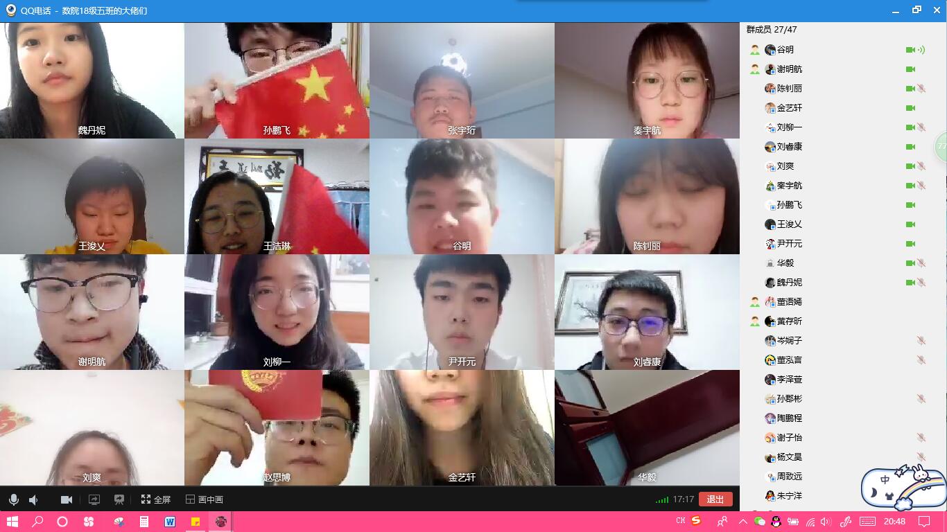 2018级5班采用视频会议的方式召开“雨涤新夏战疫先,数院齐心御时艰”线上主题班会。