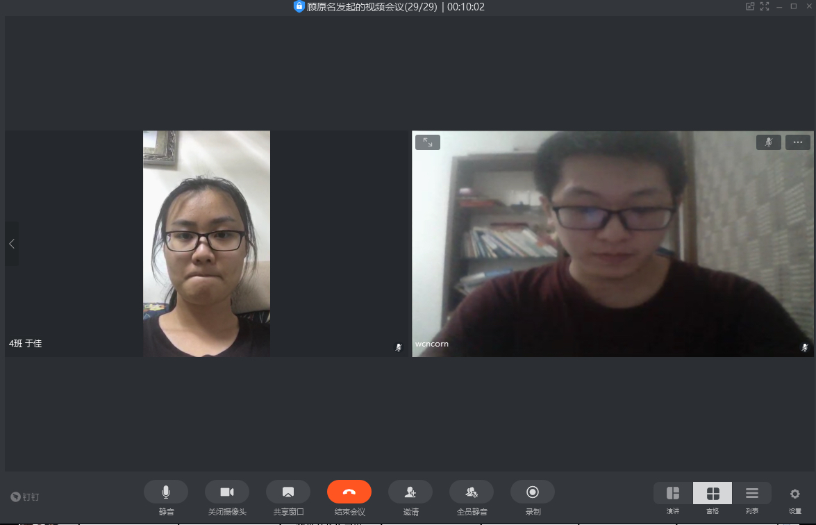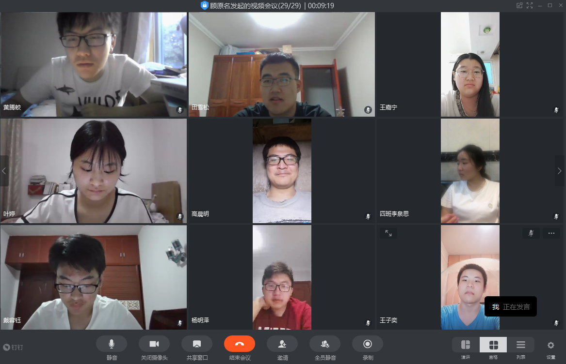 65日,19级四班用钉钉进行了以“雨涤新夏战疫先,数院齐心御时艰”为主题的线上班会,由团支书主持,围绕着抗击疫情不松懈的中心展开了讨论。