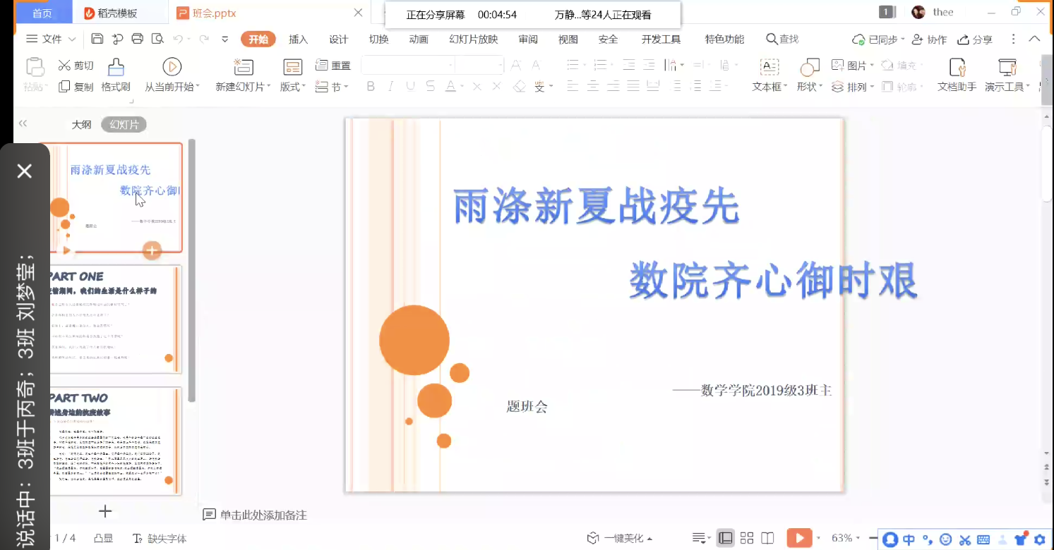 2019级3班利用腾讯会议软件召开了主题为“雨涤新夏战疫先,数院齐心御时艰”的线上主题班会。