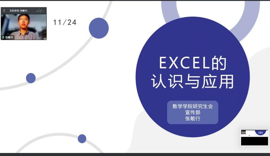 第一模块为word的基础操作,由刘旋歌同学主讲。她为同学们介绍了word的基础操作,向大家展示了如何进行文字编辑、文字美化,并在其中穿插介绍了一些常用的快捷键。第二模块为excel使用,由张敏行同学主讲。他为大家介绍了公式及函数的应用,数剧透视表的制作、excel文档的页面设置及打印方法,数据图表的建立及格式化,并以股票数据为例绘制K线图,让大家实际感受excel的便利。第三模块为报销的流程,由付蕙瑄同学主讲。她介绍了报销的流程及操作,提醒大家发票书写的注意事项,避免出现报销出错的情况。最后,同学们进行了线上提问,主讲人做了详细具体的解答,解决了同学们当前的一些问题,活动气氛热烈,讨论氛围良好。