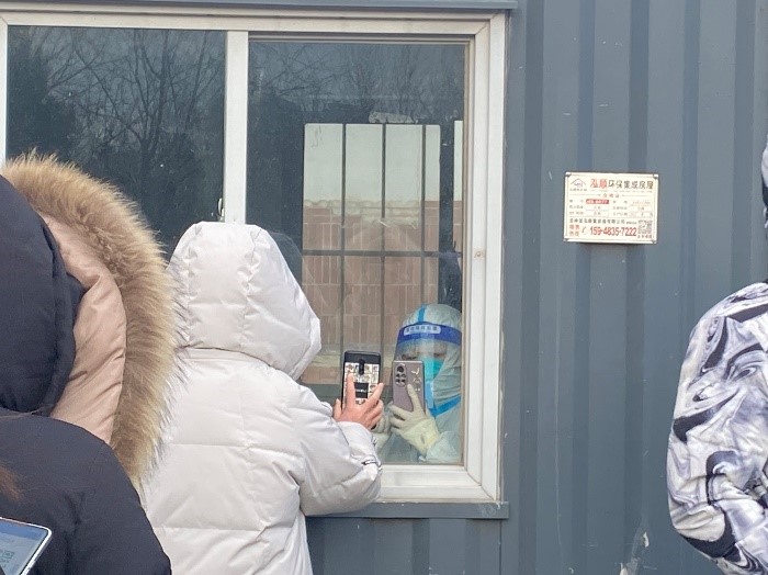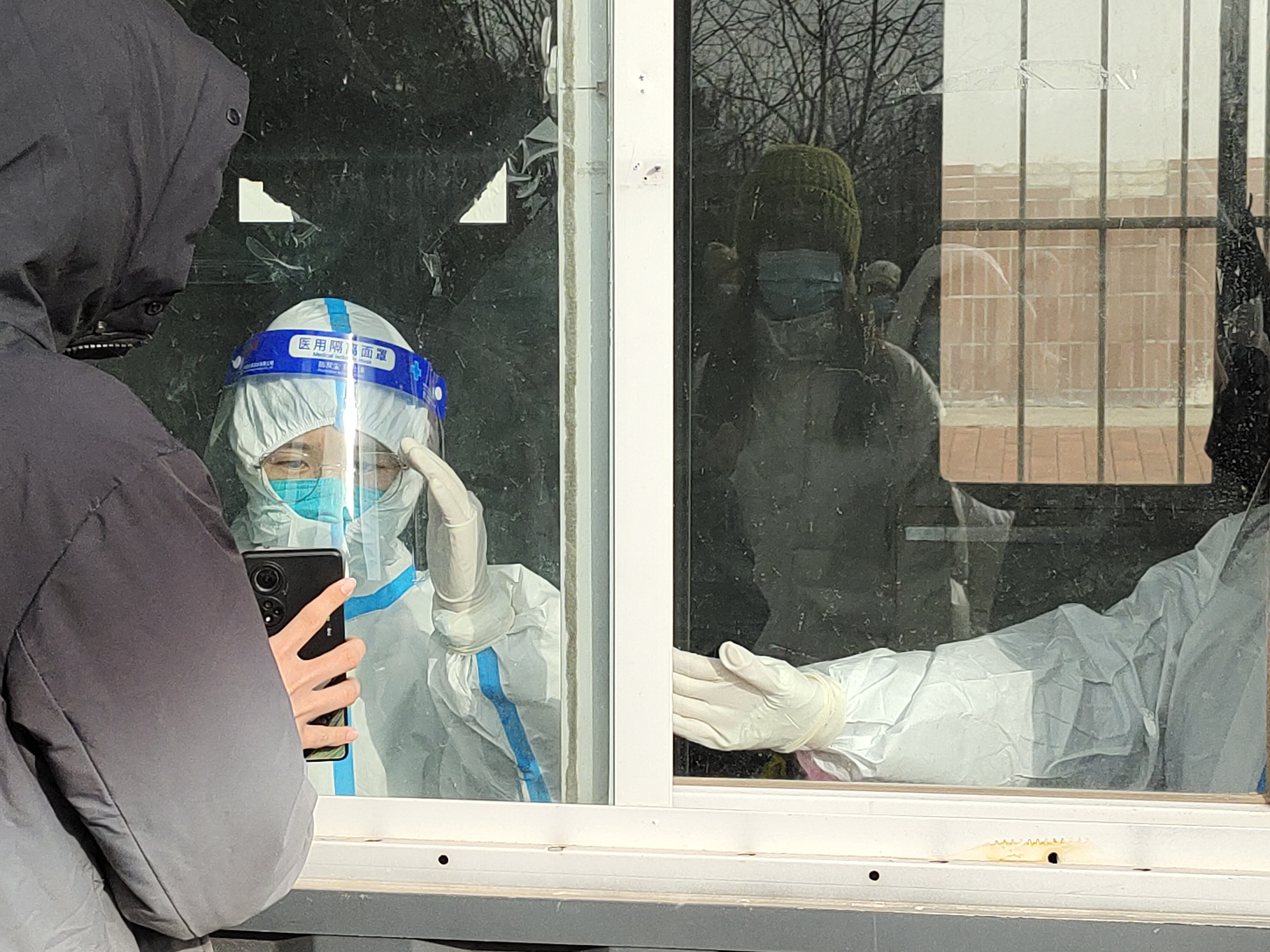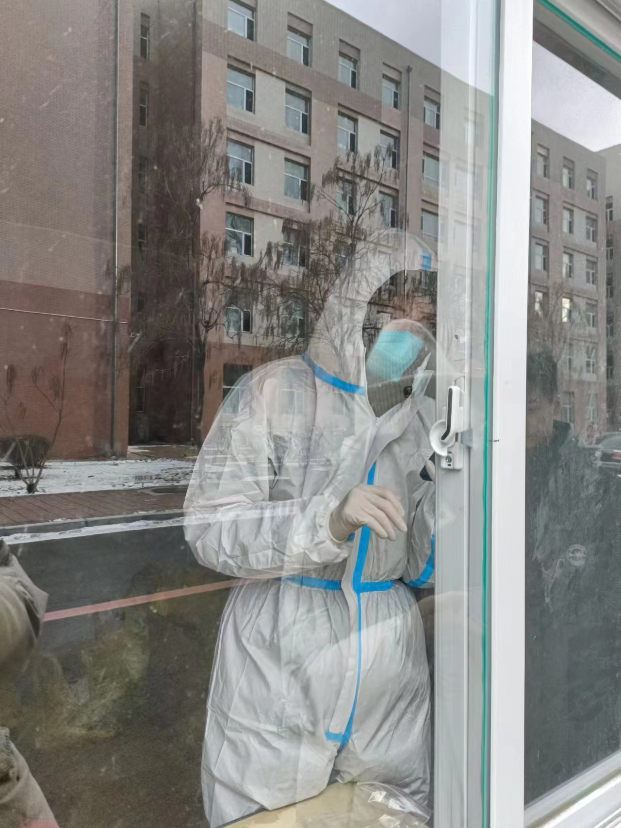 的40名志愿者们就在各个核酸监测点完成集结,他们在本就厚重的羽绒服外穿上防护服,每个同学们面临的都是将近5小时不能喝水、不能脱下防护服,还要在东北11月的凌冽寒风中坚守,即使手被冻僵,面罩上已有一层薄薄的冰,但是我们的数学大白们仍没有一丝松懈的积极配合着检测点医务人员的工作。2021级研究生杜美璇同学表示:“学校的后勤保障工作经验丰富、考虑周到,十分贴心的为各个大白们准备了暖宝宝和加热鞋垫,即使寒风萧瑟,也没感到十分寒冷。完成了一组又一组同学们的扫码工作,反而有些许兴奋,为自己终于能在这场抗疫持久战中贡献一份自己的微薄力量而开心。”就是这样一个又一个平凡的身影,化作点点星光,照亮着校园里的每一个角落,凝聚起战胜疫情的磅礴力量。