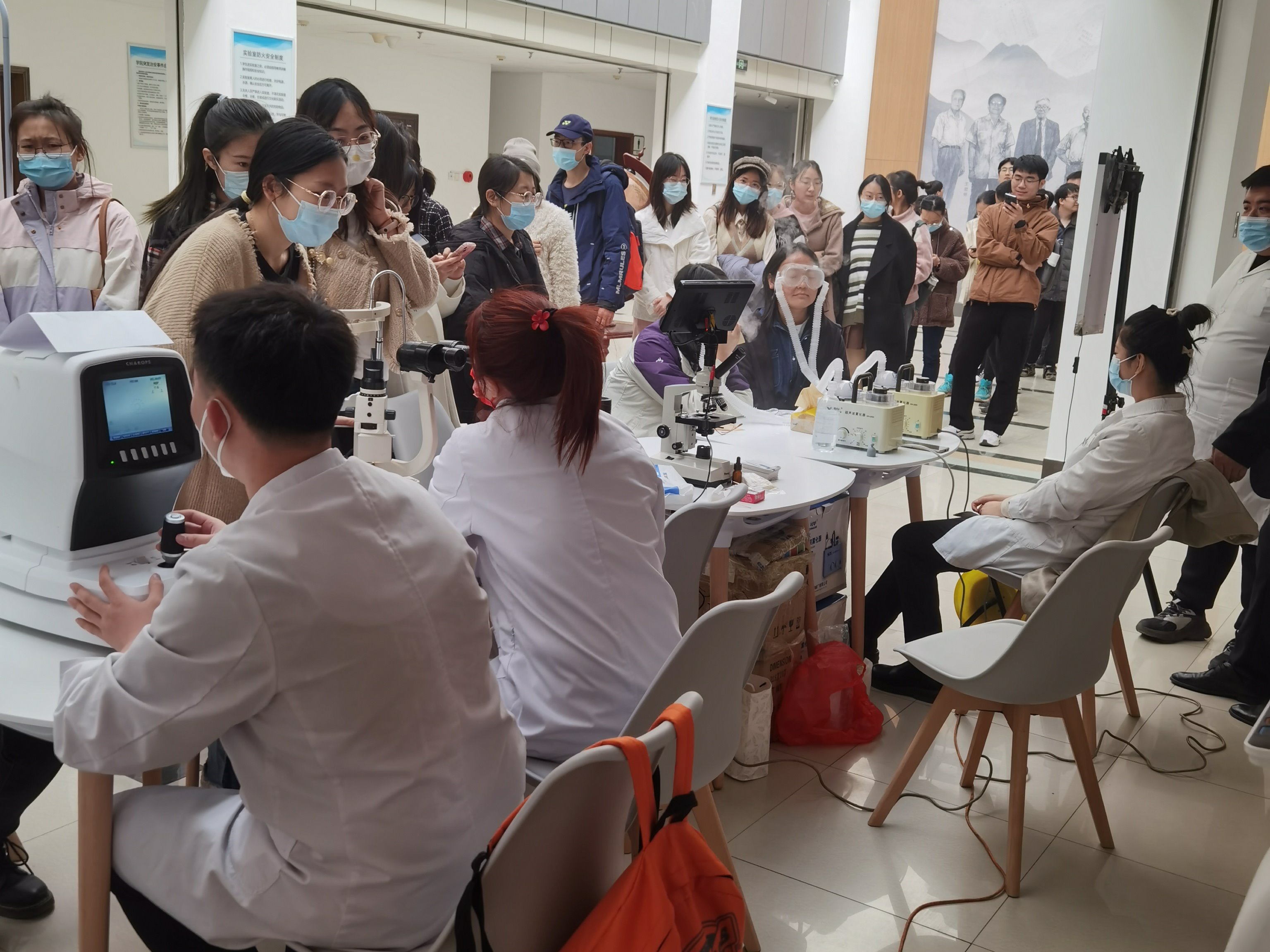 活动现场邀请到屈光手术科贾主任为大家科普眼健康知识,希望通过眼健康知识讲座、现场视力检查等方法,让学生了解自己眼睛的基本情况,关注眼健康问题。贾主任就日常生活中的爱眼护眼知识进行了解说。随后,现场为学生们进行了验光、螨虫、裂隙灯等眼健康检查,让眼干的学生们体验了雾化熏蒸等项目。检查过程中,对于部分存在近视、散光等问题的学生,医生和验光师给予了针对性的医学检查建议,对早期视力学生及时进行了如何干预的指导。