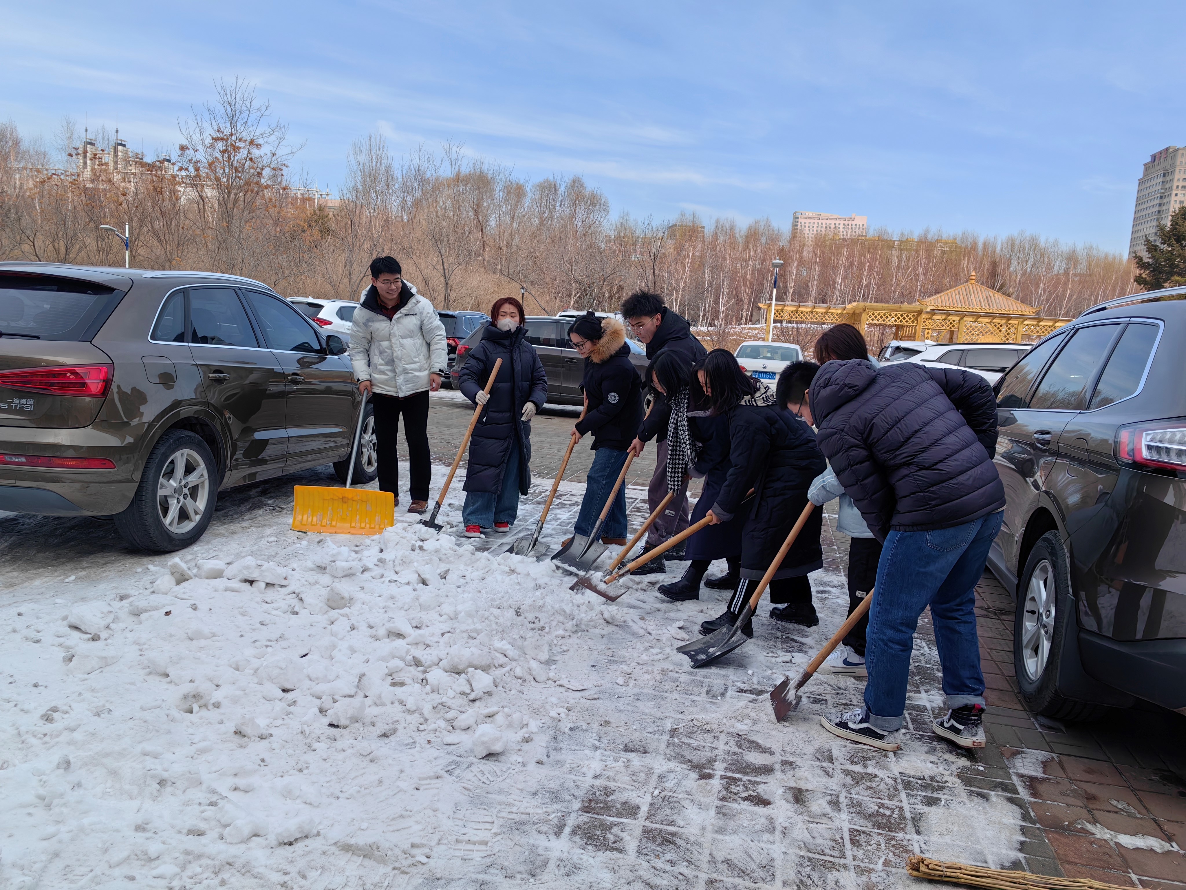 寒风凛冽的天气并没有阻挡住学生们前行的脚步。他们自发地拿起铲雪工具,毅然决然地投入到铲雪、清理雪地的行动中。他们展现出了高度的责任感和担当精神,用实际行动诠释着奉献与付出的真谛。他们不仅是清理雪地的能手,更是传递爱与温暖的使者。