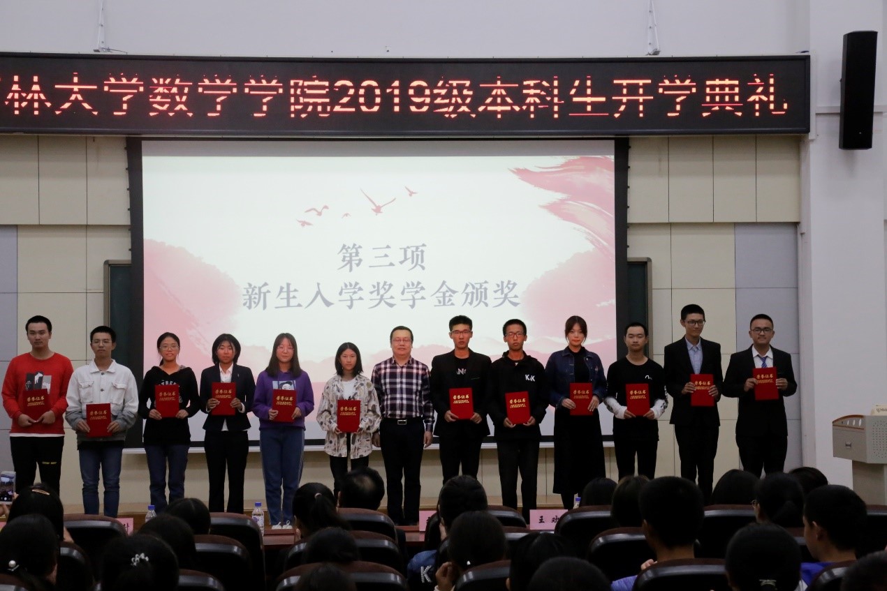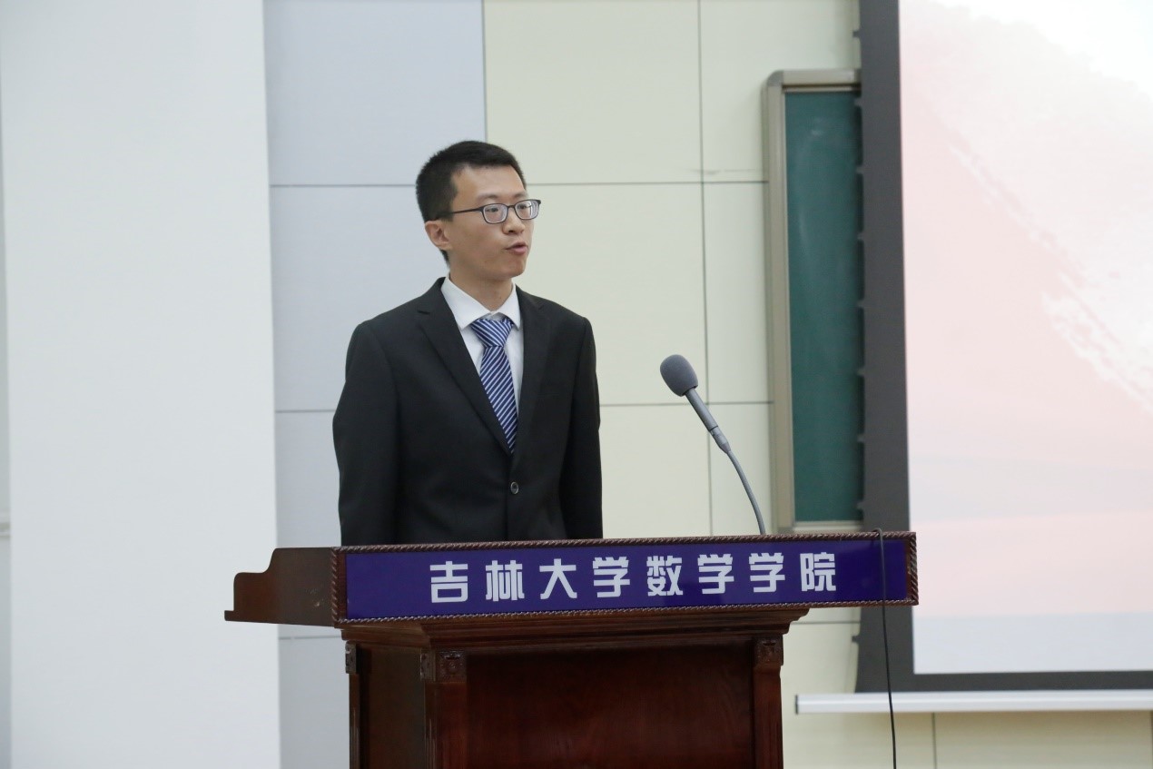接下来,2019级本科生王倍沣作为新生代表发言。王倍沣同学慷慨激昂的演讲,让我们感受到新同学对大学生活的期待与向往,让我们相信数院19级的同学有九天揽月的志向。我们相信他们定会不负韶华,砥砺前行。