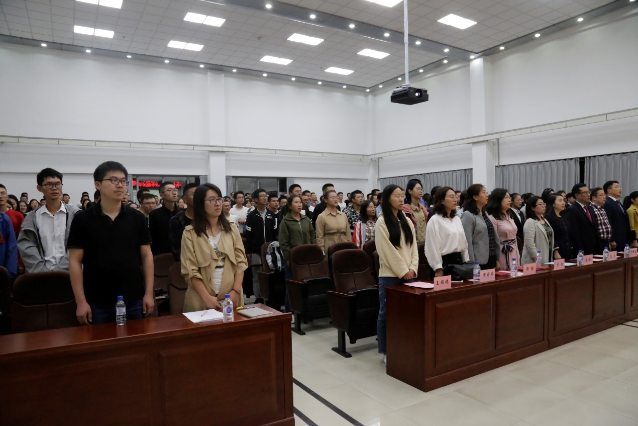 在数学楼二楼报告厅举行了2019级本科新生开学典礼。院长李辉来教授、党委书记张然教授、副院长史少云教授、党委副书记兼纪委书记王欢老师、行政副院长陈续升老师、于浩然等七位新生班主任以及2019级全体同学参加了本次开学典礼。典礼由色色视频
