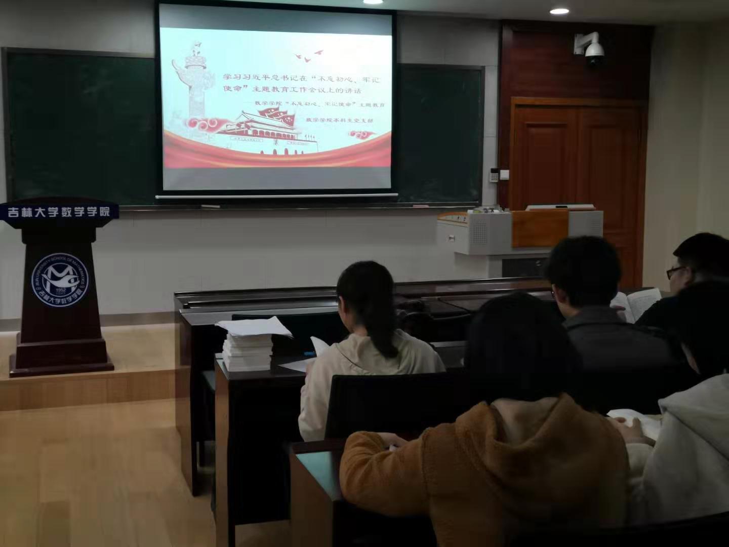 第一、第二党支部于2019年10月10日中午在数学楼第二报告厅进行“不忘初心、牢记使命”主题教育,组织集中学习了习近平总书记在中央政治局第十五次集体学习时的重要讲话,和在内蒙古考察并指导开展“不忘初心、牢记使命”主题教育时的重要讲话。本次主题教育旨在使广大党员同志充分认识习近平总书记重要讲话的重大意义,并切实把思想和行动统一到重要讲话精神上来,围绕守初心、担使命,找差距、抓落实的总要求,发扬自我革命精神,常怀忧党之心、为党之责、强党之志,积极主动投身到这次主题教育中来。