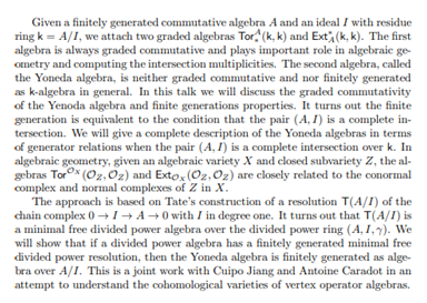 Sino-Russian Mathematics Center-JLU Colloquium(2024-002)—Finite generations of Yoneda algebras for complete intersections