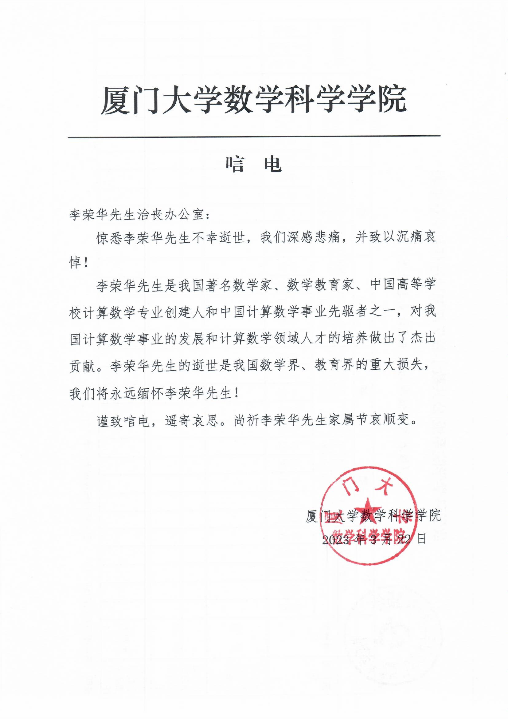 江苏省大规模复杂系统数值模拟重点实验室唁电
