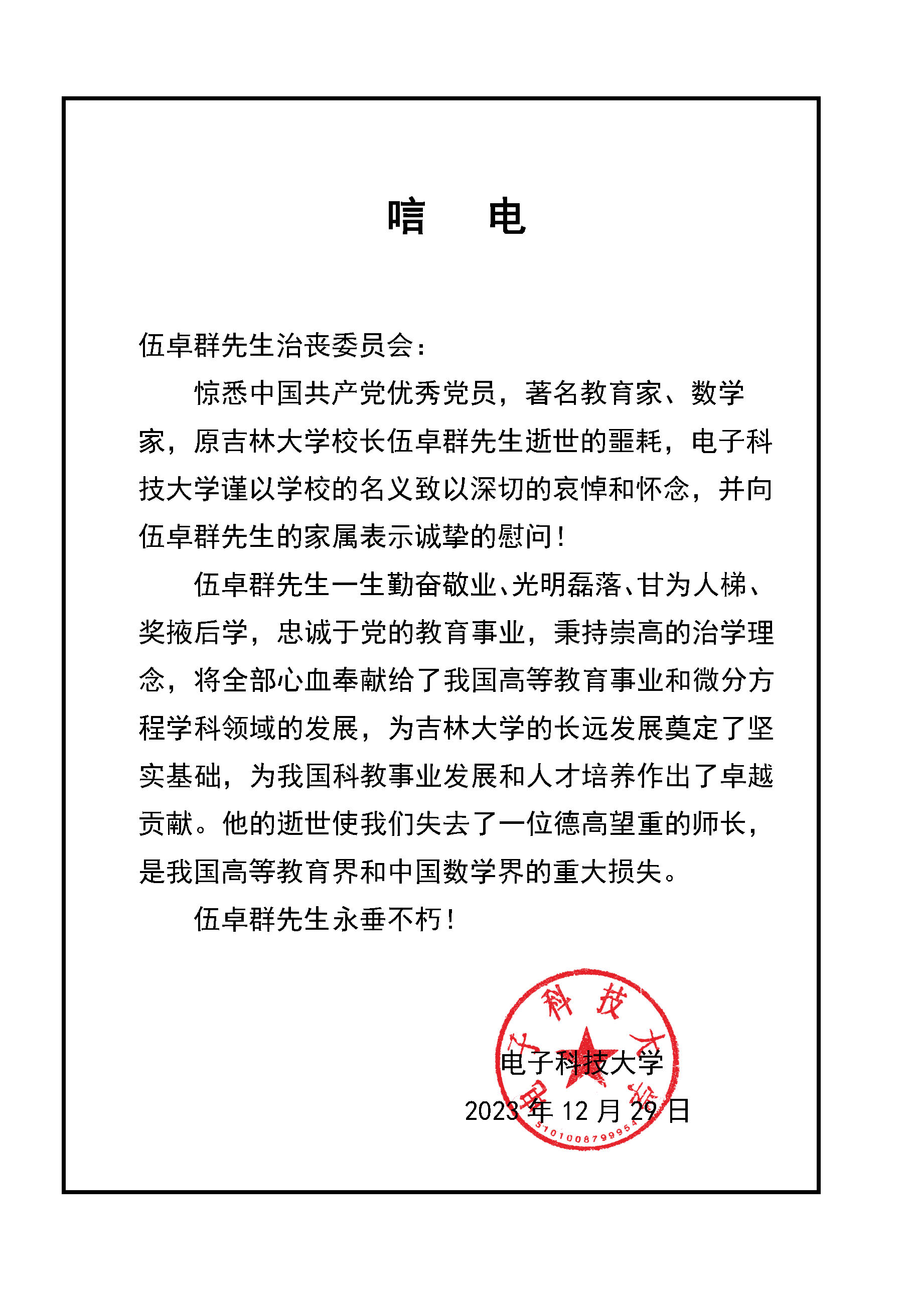 电子科技大学唁电