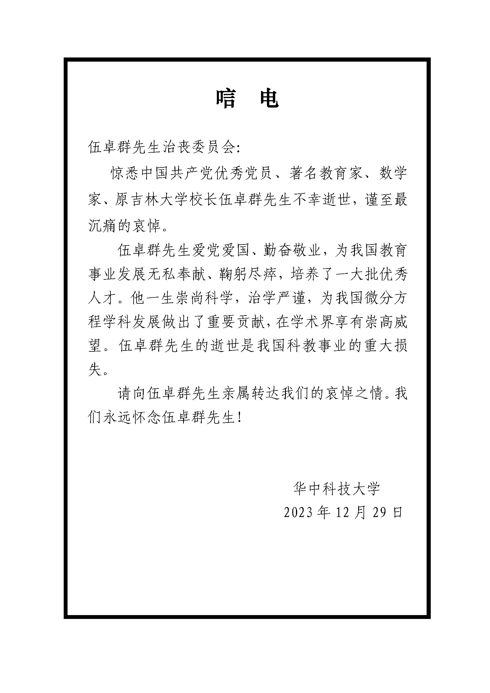 华中科技大学唁电